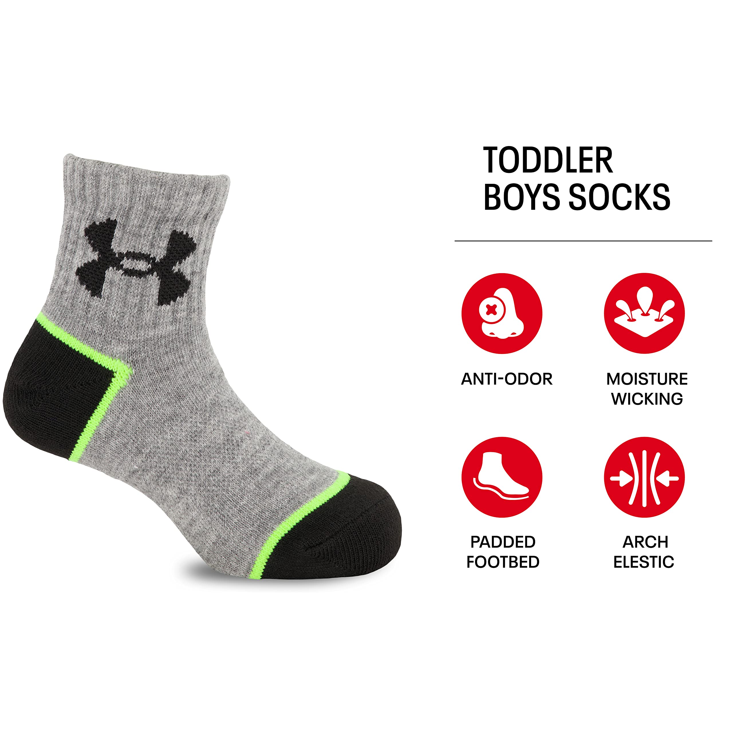 FEATURES: Under Armour Socks features a padded footbed, arch elastic, and anti-odor. Whether you are playing a sport, such as football, soccer, softball, baseball, lacrosse, field hockey, volleyball, rugby, and all other athletic activities. They are perfect cozy childrens socks for school gym and recess, or simply to put some flash into your child's outfit.