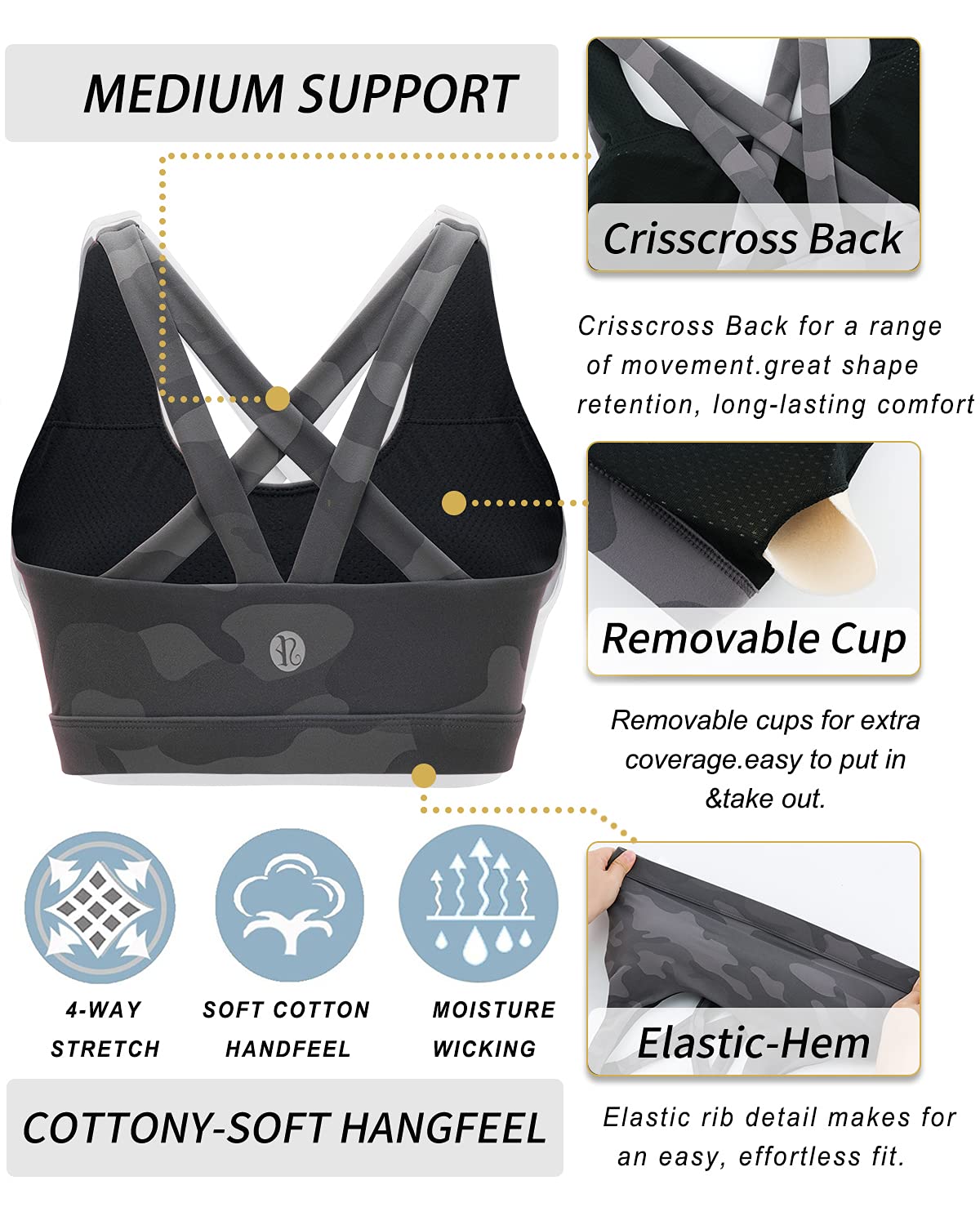 WHY WE MADE THIS:Need a sports bra that does it all? Look no further! This sweat-wicking cross-strap bra gives you the coverage and support you need for yoga, run, and the gym—without restricting your movement or breath. fabric has added lycra that allows the bra to stretch with you and retain its shape over time. Slip in optional, removable cups for full coverage—if you want it. This bra is intended to provide medium support for great shape retention, long-lasting comfort.