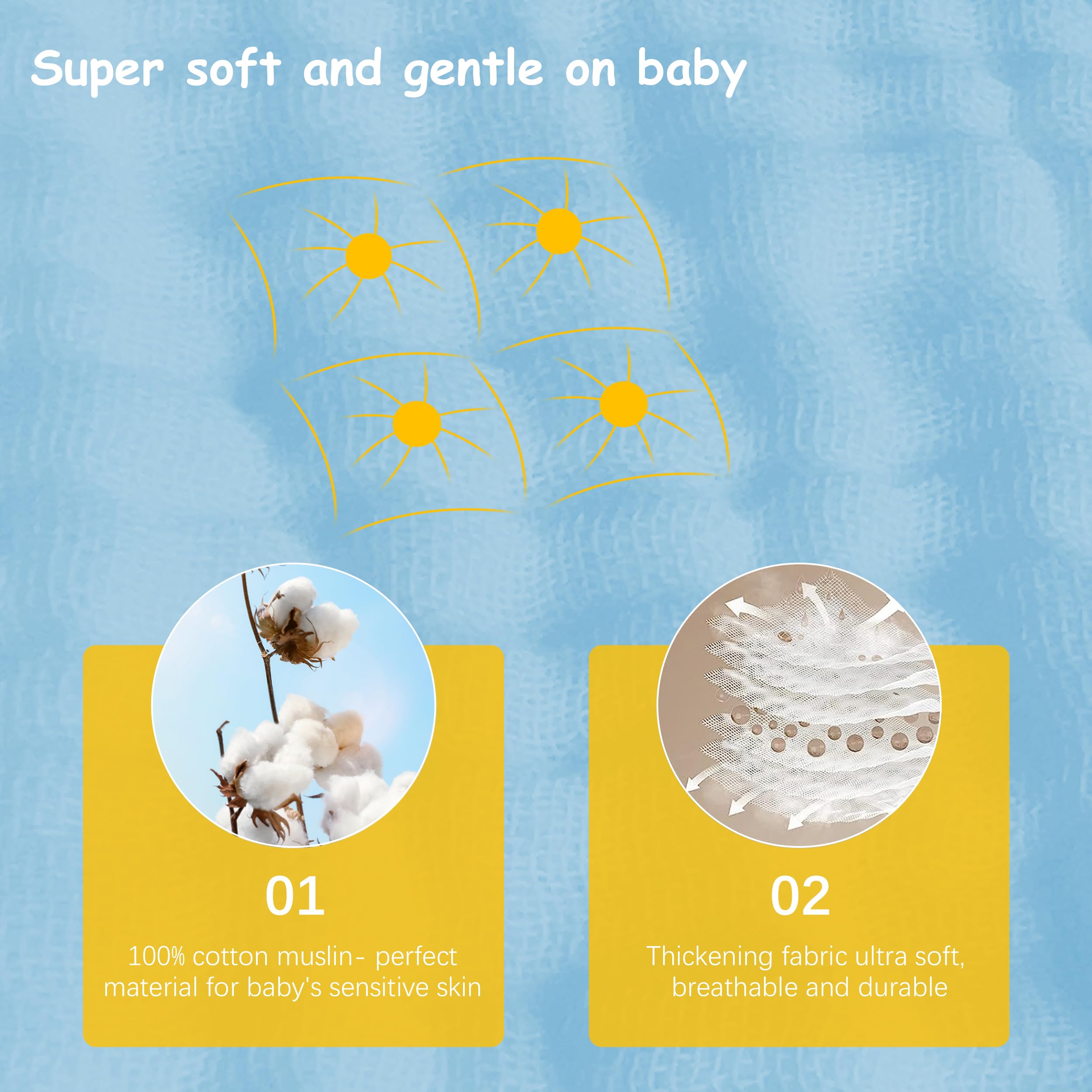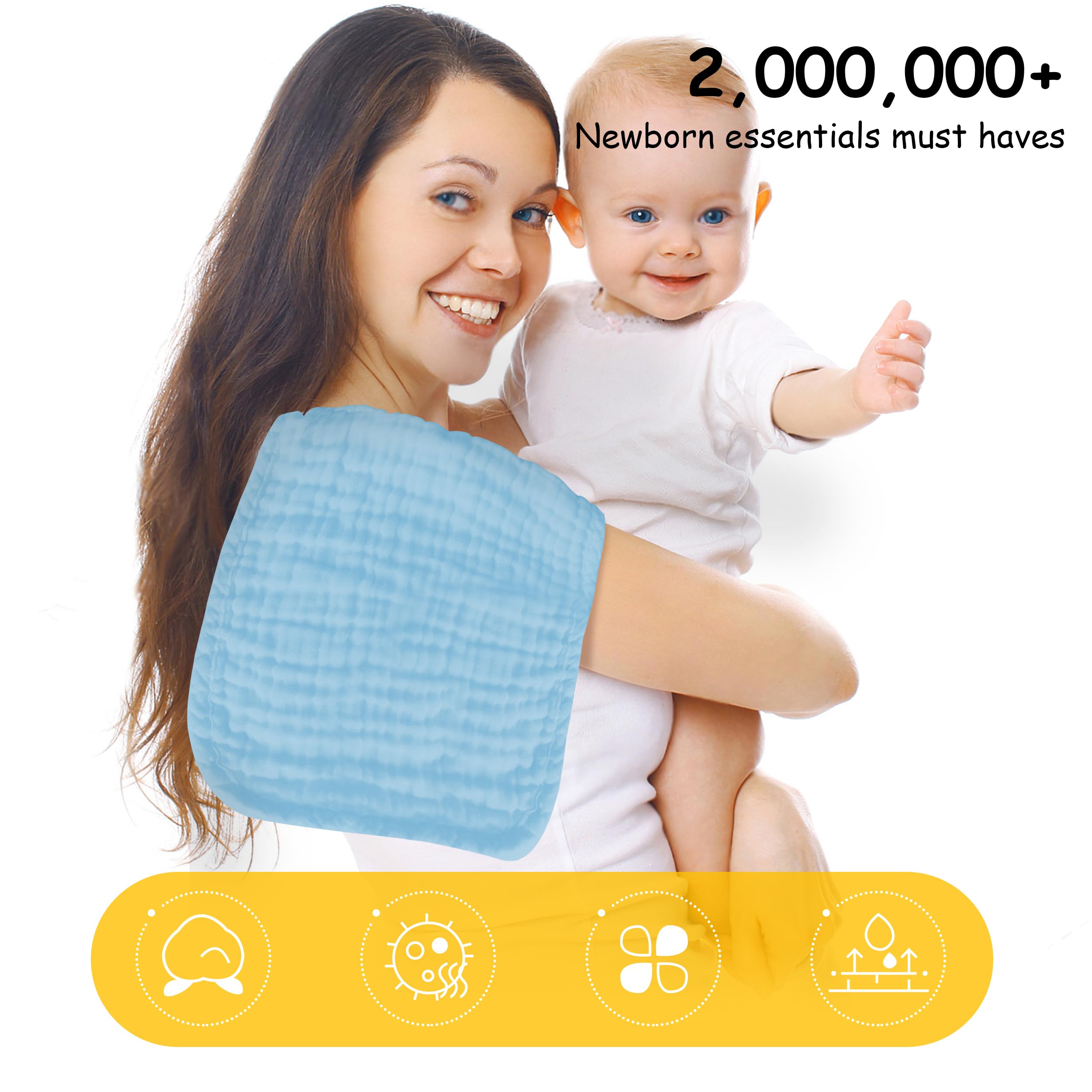 💎ULTRA ABSORBENT- These washcloths are perfect for catching spills and drools, thanks to the ultra-absorbent 100% cotton muslin fabric. It feels just like touching a soft cake, truly a baby essential item.