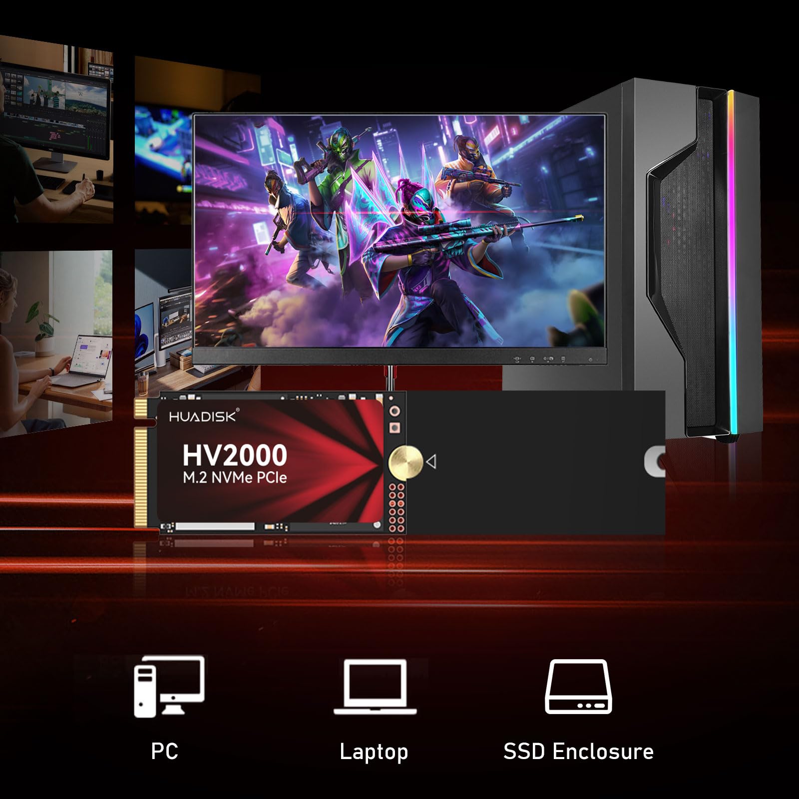 Universal Compatibility: Huadisk M.2 2242 2280 NVMe SSD delivers instant plug-and-play upgrades for PCs and laptops, support for Windows 7(NVMe SSD require additional drivers), Windows 8, Windows 10, Windows11 and Linux