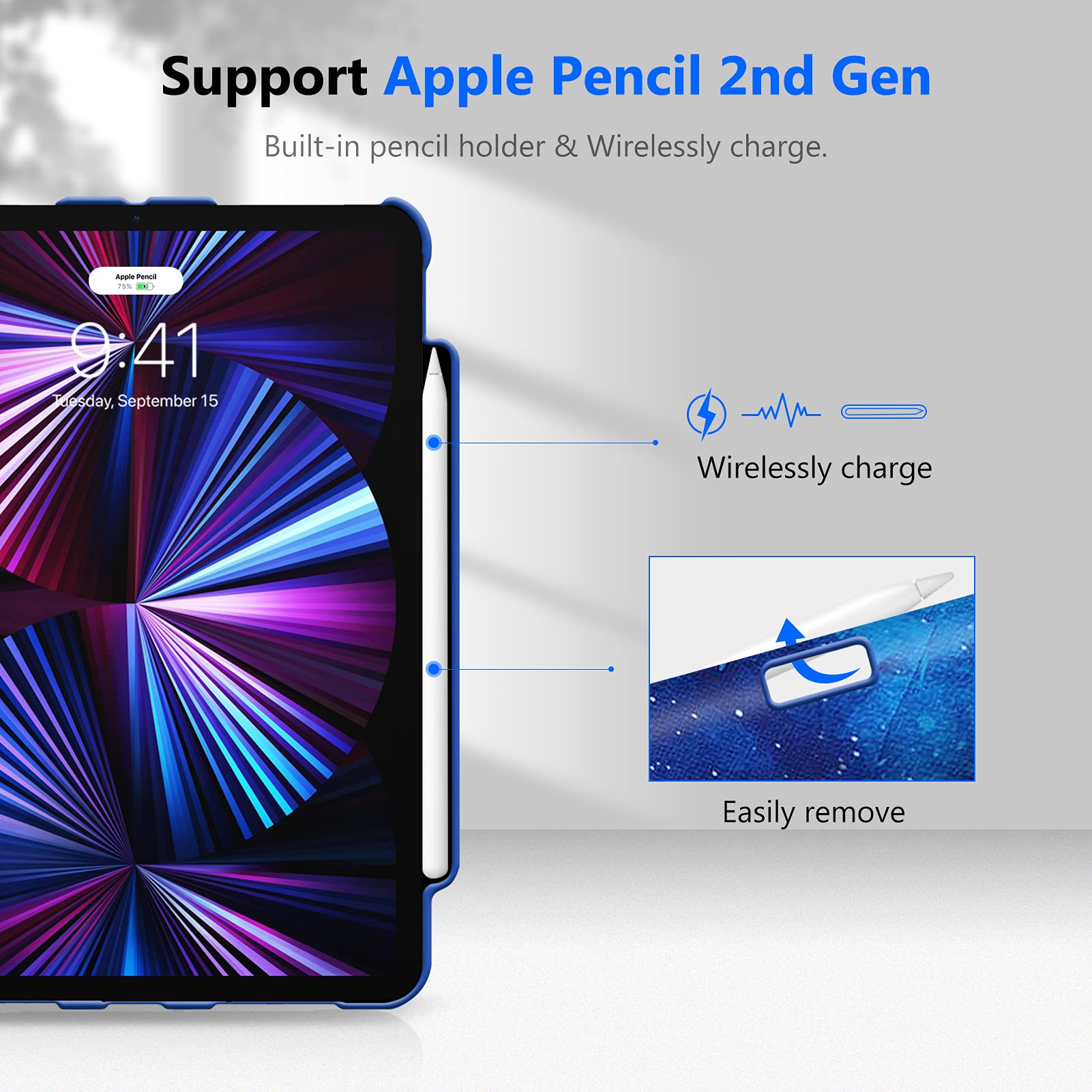 Built-in pencil holder, grab your 2nd gen pencil effortlessly whenever you want, easily to carry your iPad pencil with your device. (Pencil not included!)