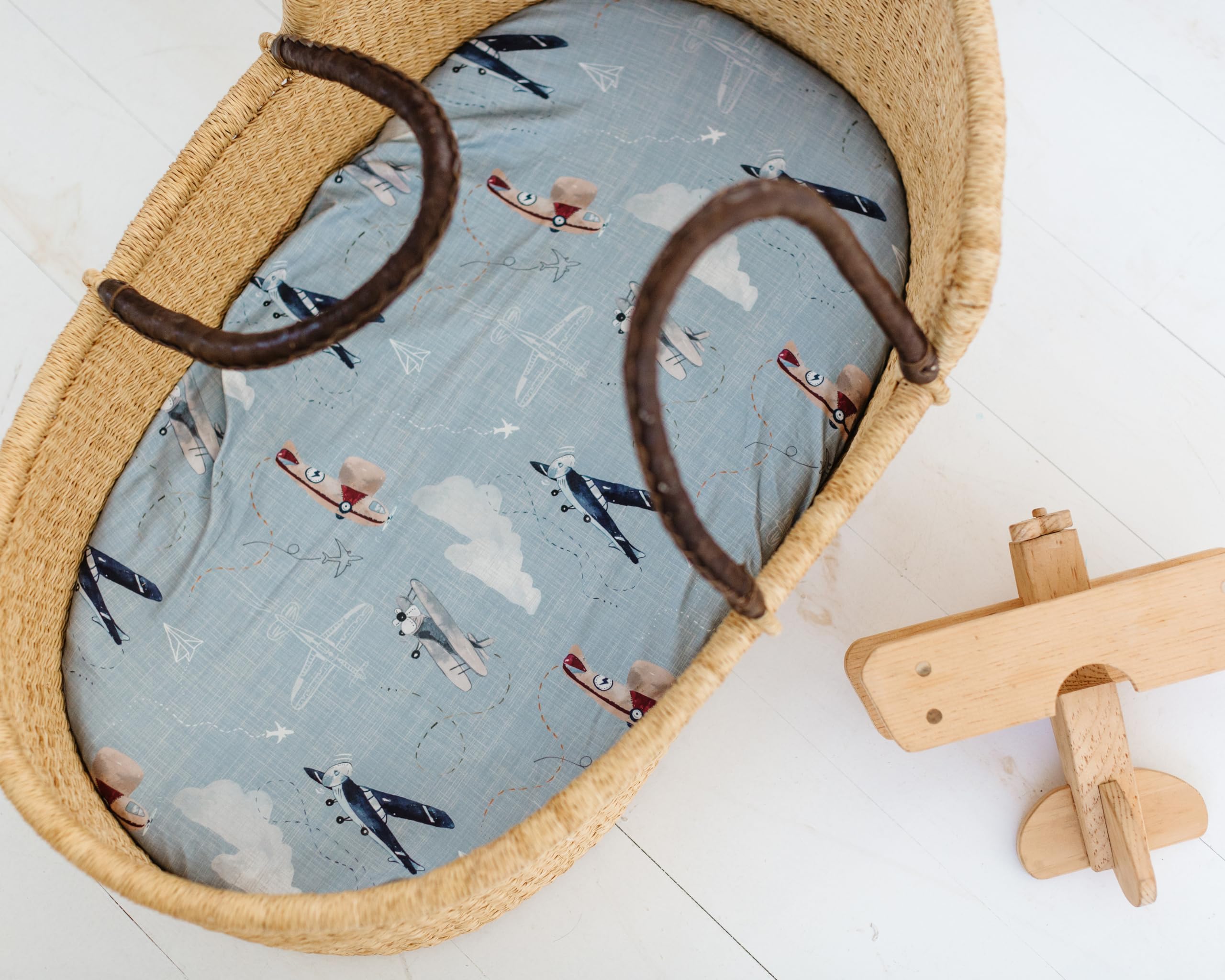 βοΈ MADE TO LAST β Our bassinet fitted sheets are made to last. For best long-term care, machine wash these sheets on cold with similar colors on a gentle cycle. You can then tumble dry on low heat or line dry to best preserve the bright and colorful designs of this quick-drying material. Fill your world with beauty by mix and matching with Sorrel + Fernβs baby mobiles.