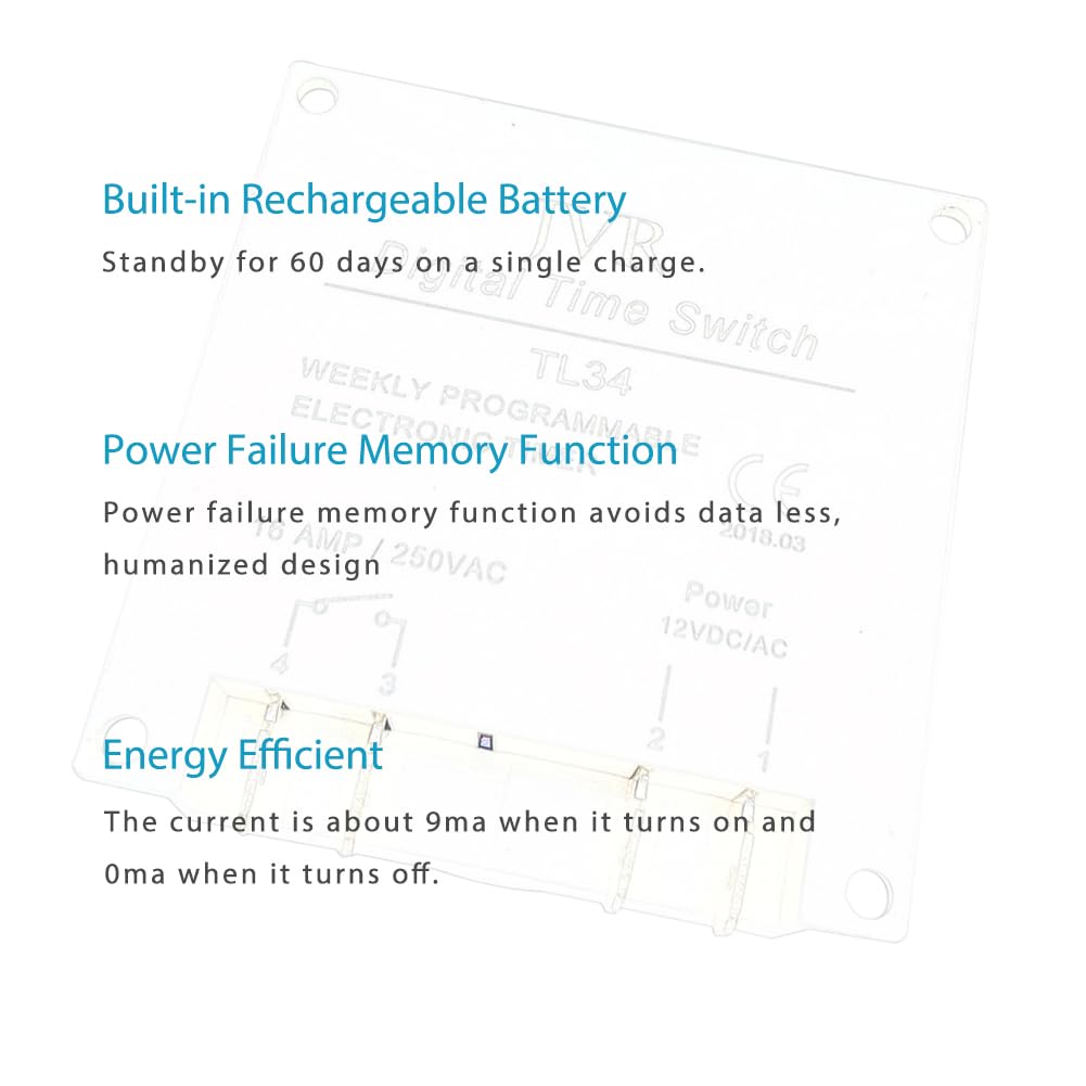 【Energy Efficient and Powered by 12V DC】- Designed for energy efficiency, JVR timer switch automatically controls power supply, conserving energy effectively. It operates on a 12V DC voltage, ensuring reliable and efficient performance.