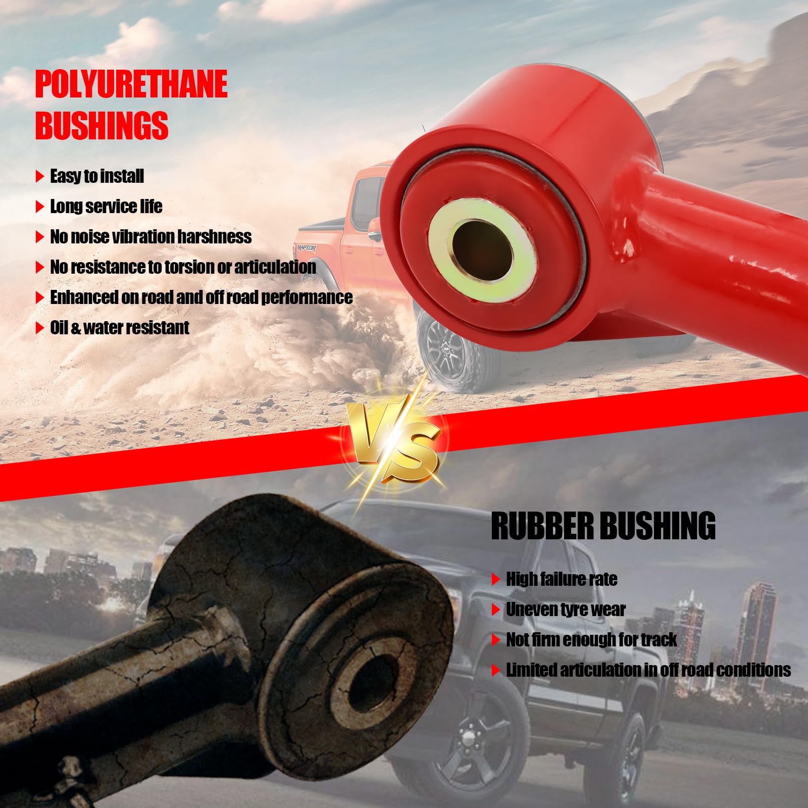Safety & Stability: Tubular arm bushings offer superior durability, while fully replaceable and greasable copper fittings ensure long-term reliability. Polyurethane bushings, with higher hardness than rubber, provide enhanced stability, particularly in extreme climates.