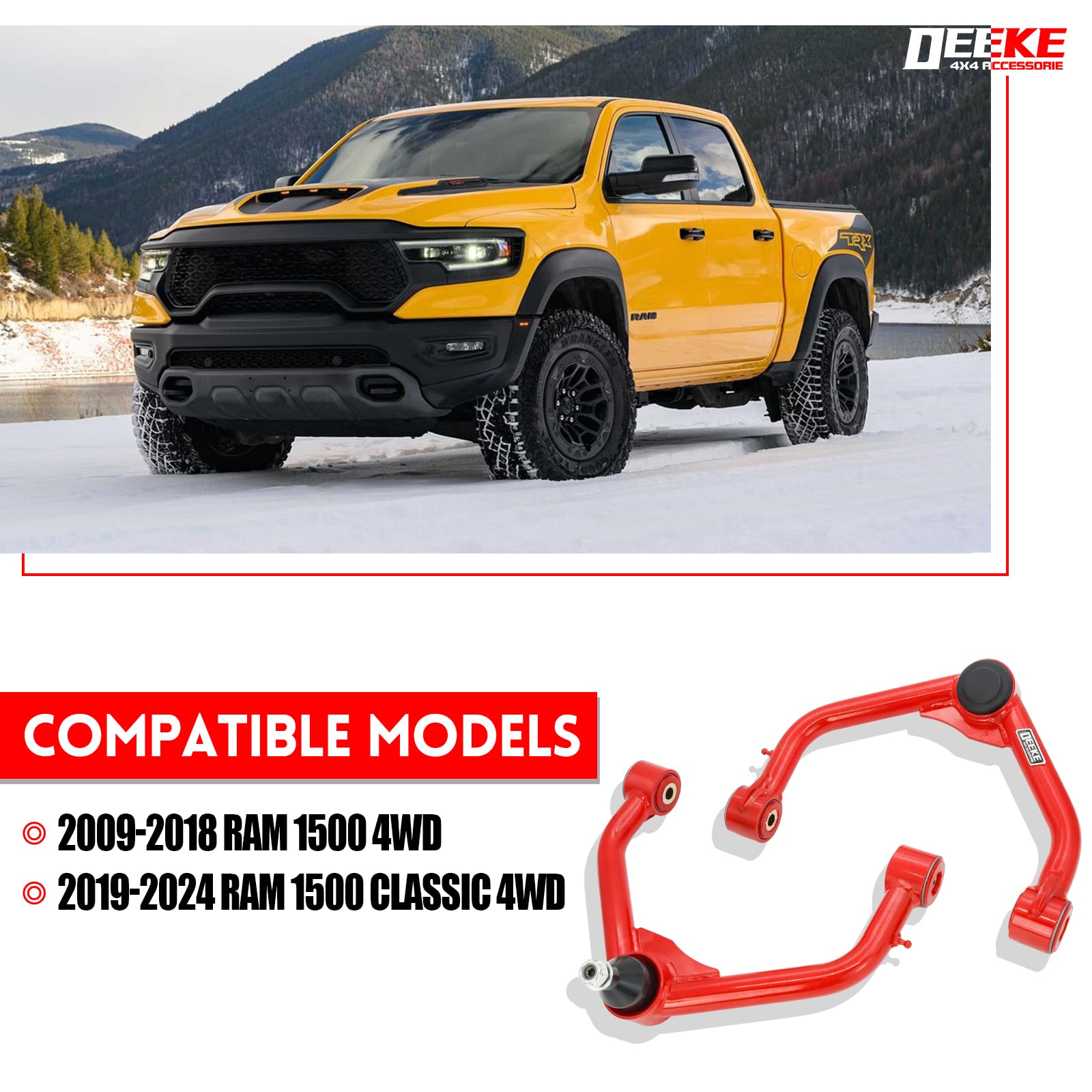 Fitment: Compatible with 2009-2018 Dodge Ram 1500 4WD 2019-2024 Ram 1500 Classic 4WD models. Perfect replacement for OEM control arms, lifting the vehicle by 2-4 inches. These control arms seamlessly fit stock wheels.