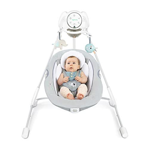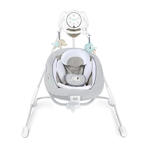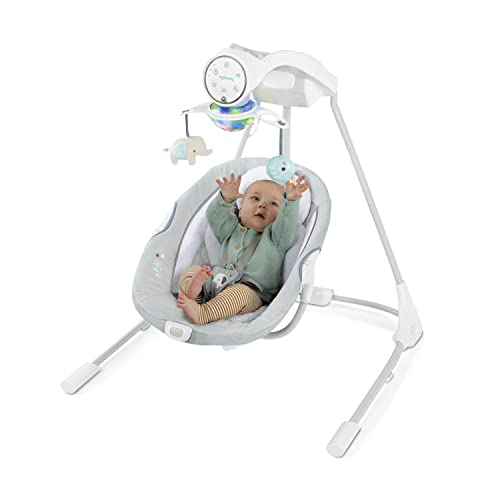Ingenuity InLighten Soothing Swing - Swivel Infant Seat, Soothing Sounds, Lightweight Mesh - Dakota