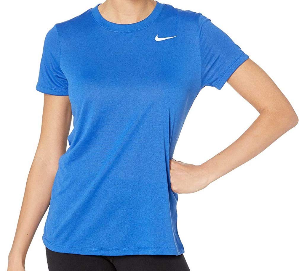 Ideal for any workout, the Nike Dry Legend Training T-Shirt delivers the performance-ready feel of sweat-wicking fabric while boasting a feminine silhouette with a scoop-neck design.