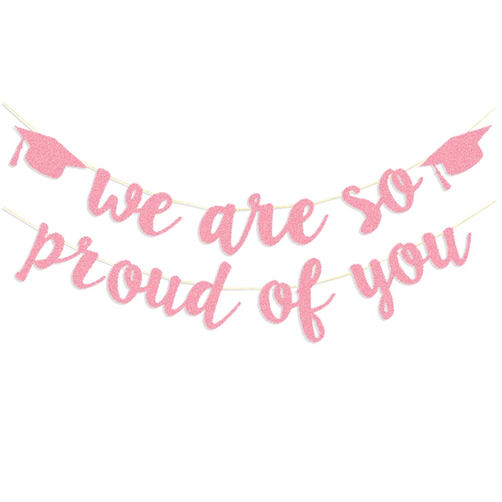 Pre-assembled / Ready to use : This We are So Proud of You Graduation Banner Decorations is made of black glitter material that is pre-assembled and ready to use, suit for Kindergarten, senior school, college, nursing, doctor congrats graduation party decoration, Birthday, indoor or outdoor home decor.