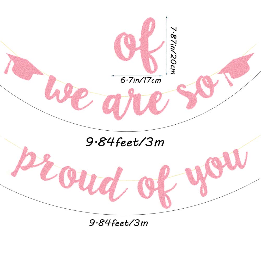 Package Included: 1pcs Rose Gold Glittery We are So Proud of You Graduation Banner, great for 2025 graduation party supplies decoration, and it come with 2 separate parts: a part "we are so", a part" proud of you", each on part with approx 9.84 feet / 3meters rope.
