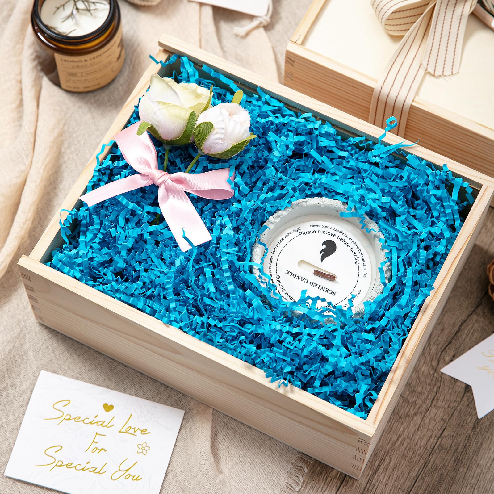 Shredded Paper for Gift Box: Decorate your gift with this lake blue crinkle paper to fully display your gift and make your gift more attractive.Perfect to fill the extra spaces in your gift boxes or basket.