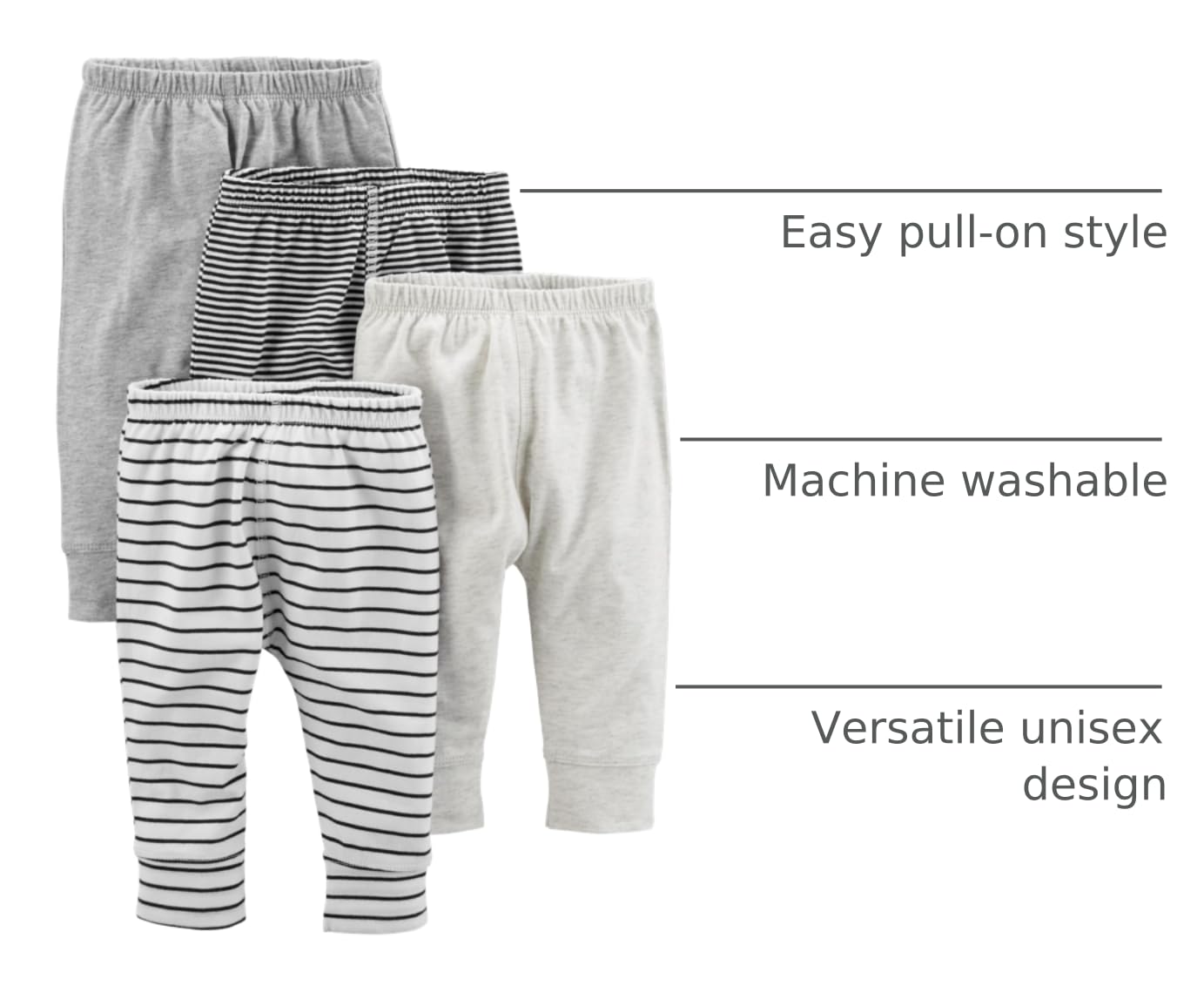 4-Pack Value: Exceptional value with four high-quality baby pants in one pack.