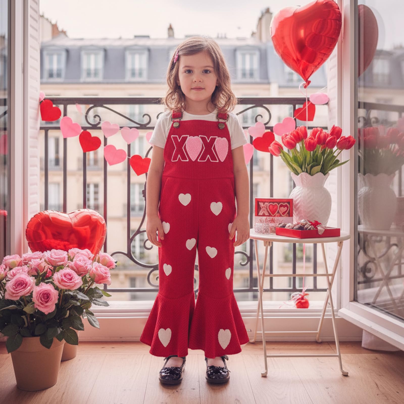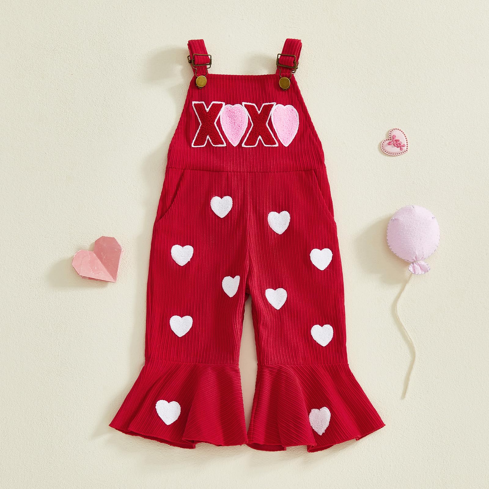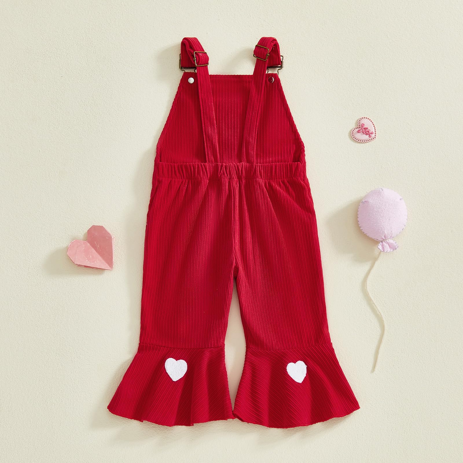CASUAL DESIGN: Valentines Day baby girl clothes,valentines baby girl outfit,baby girl outfit valentines day; Toddler girls overalls with love heart bow embroidery, turkey/merry jumpsuit,striped print, cute bow, button straps, sleeveless, flared legs; Delicate design details make your little one cute and charming