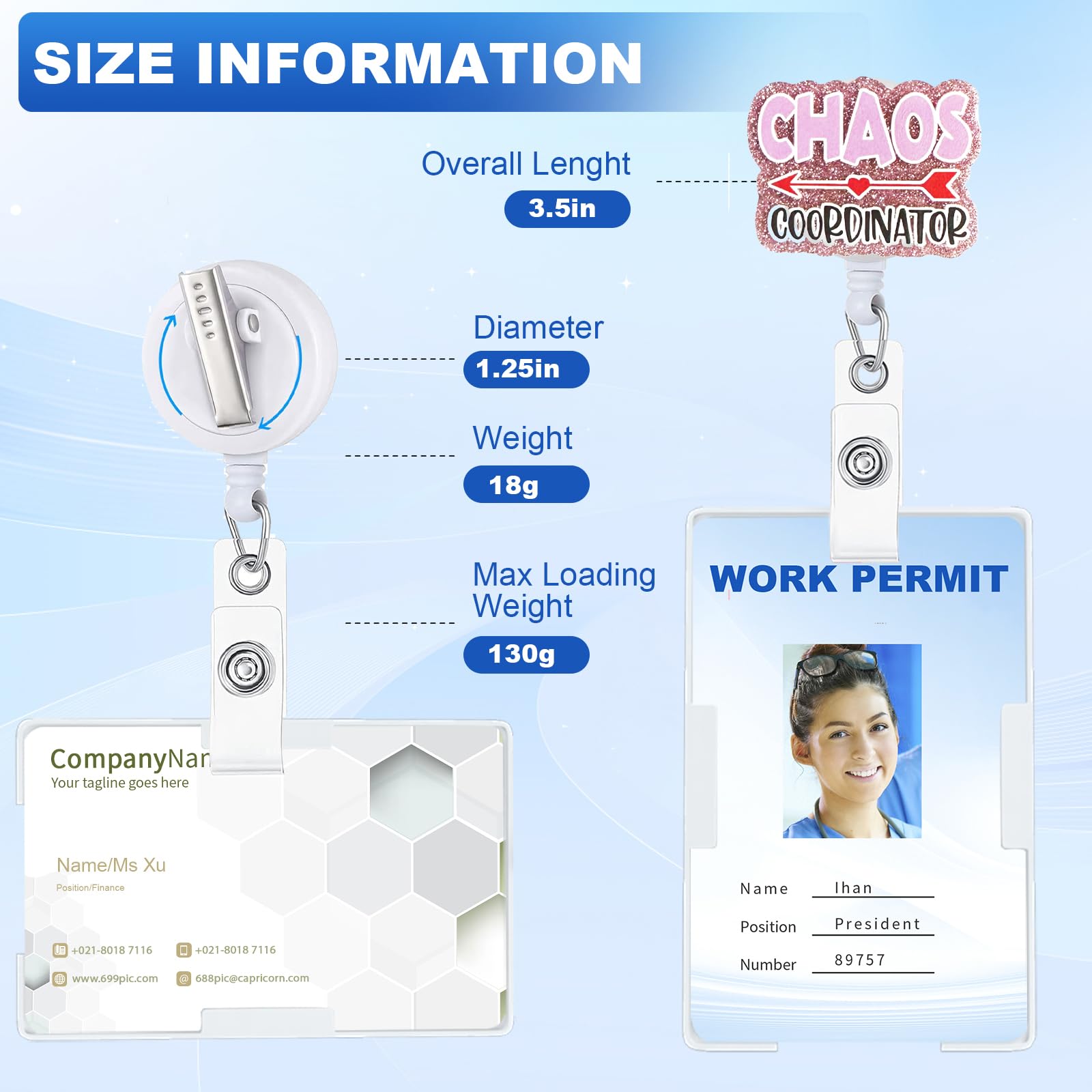 【Size】:Badge reel is 1.2" in diameter, Retractable Length: 23.6".