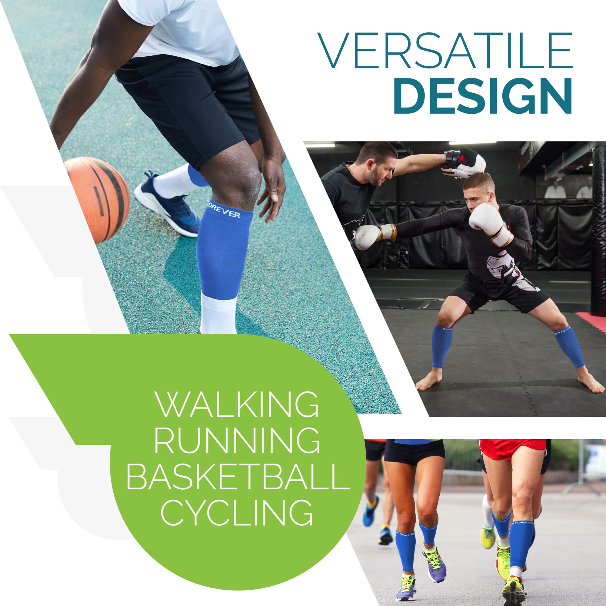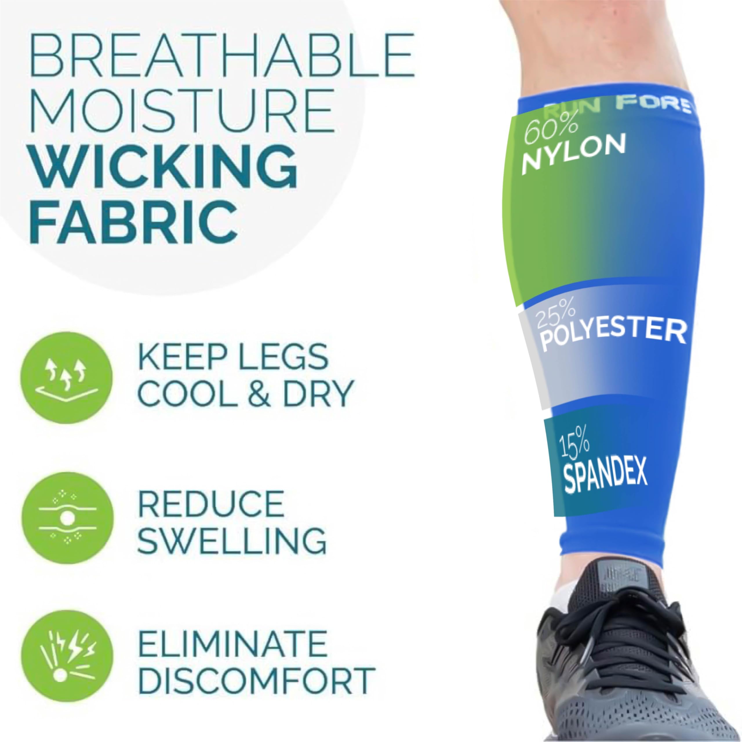 Multiple designs, colors & sizes: Run Forever Sports calf compression sleeve for men & women has many engaging colors and caters to all sizes, from small, to xl, to plus size.