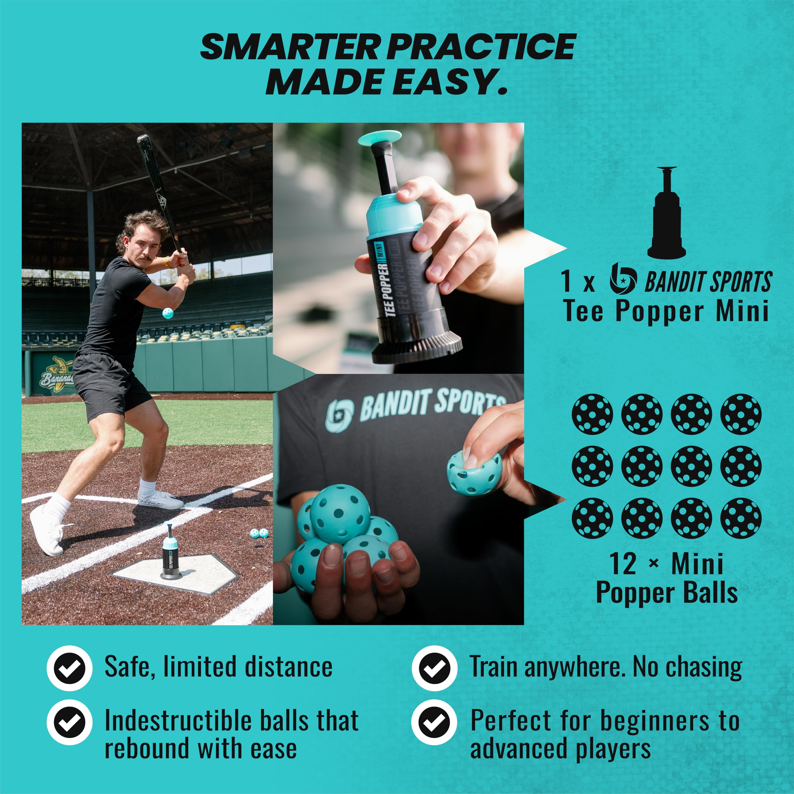 DONT HIT POPPER WITH BAT: Wait for the popper balls to pop up to swing at the ball. This will improve hand eye, but also keep the tee popper intact! Hitting it with a bat will cause damage to the spring box or lip that holds the popper balls.