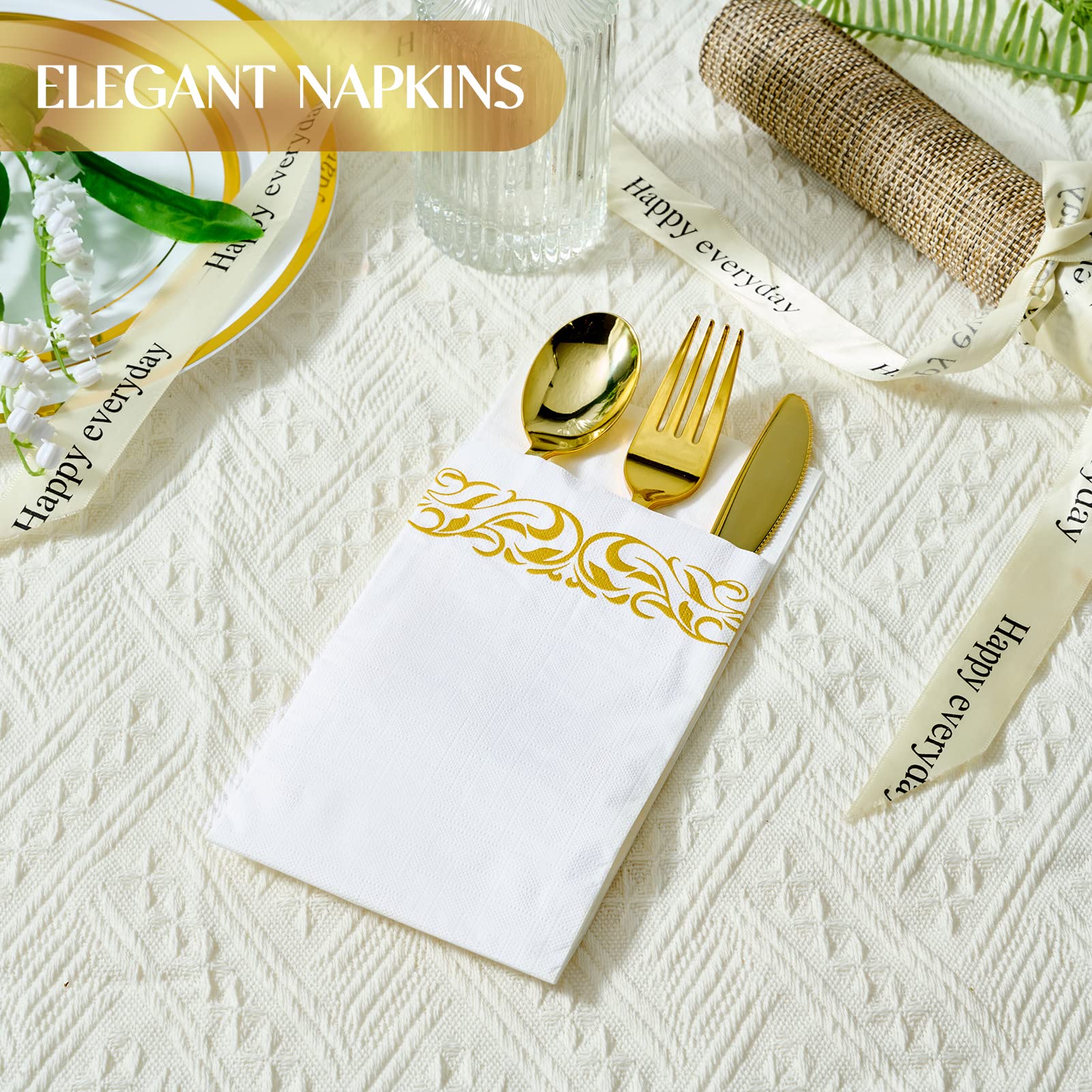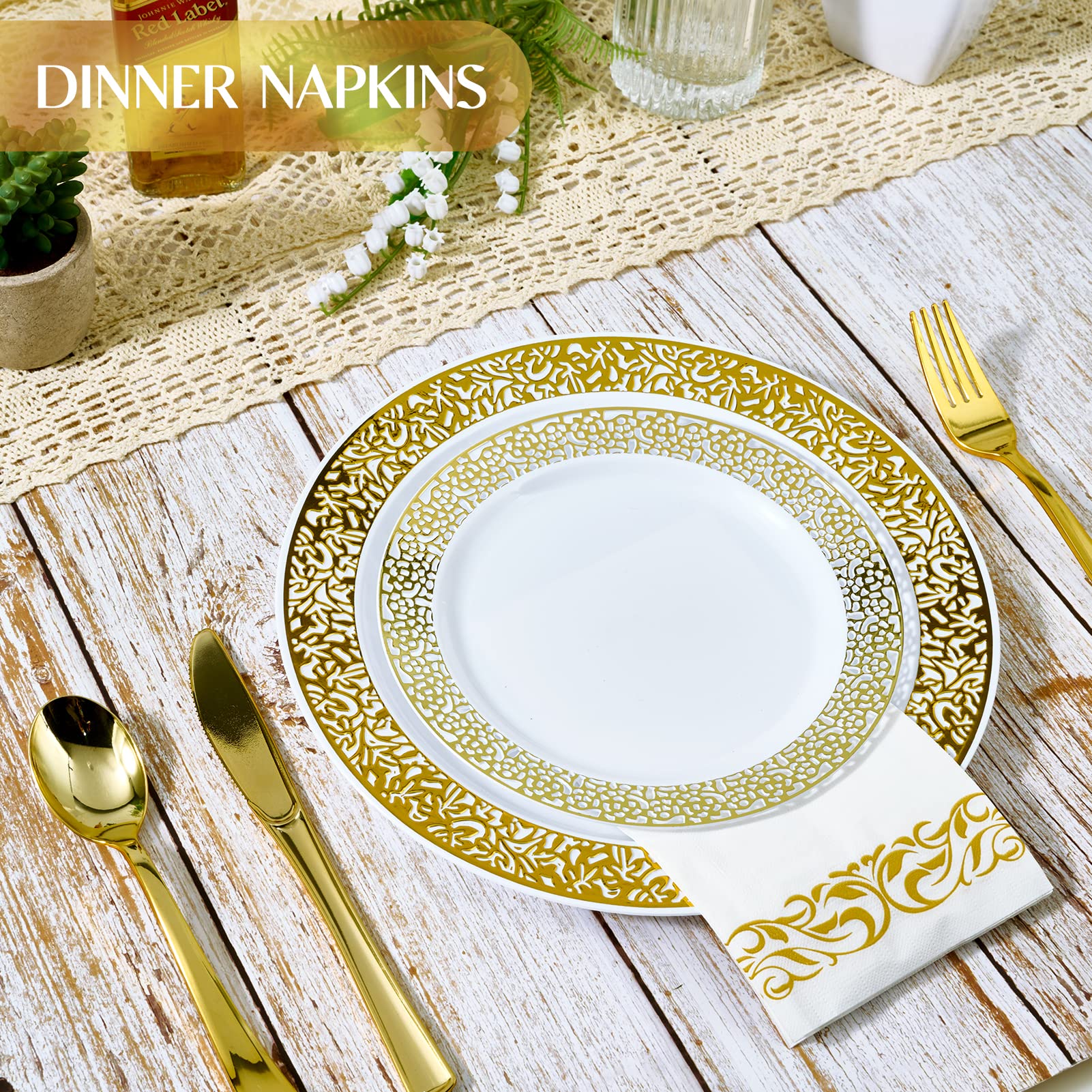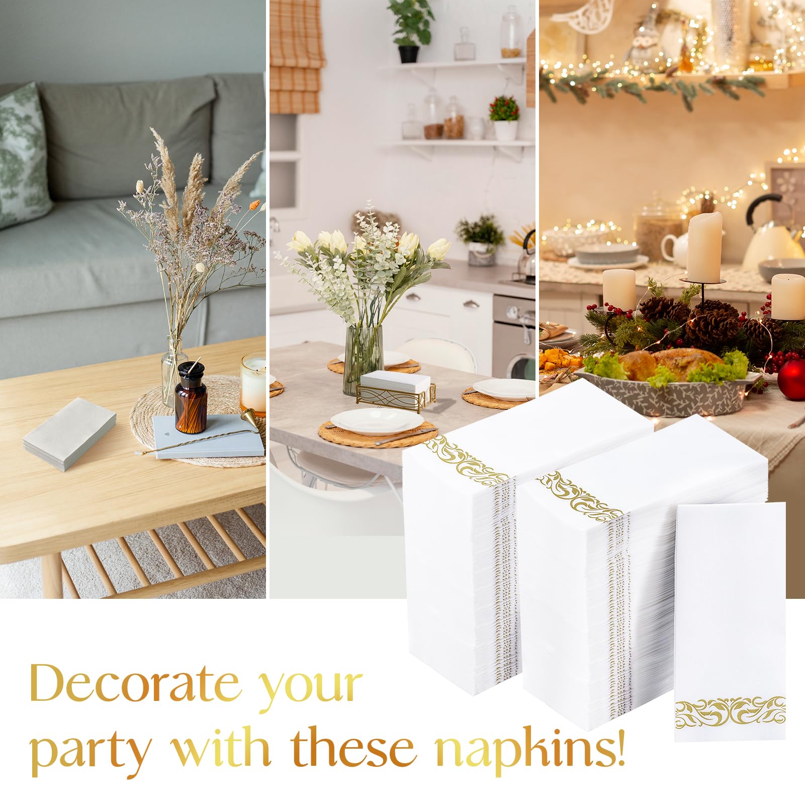 Elegant Design: The white dinner napkins are printed with a delicate gold trim decorative design, which shows your fashion sense, Adding charm and elegance to your dining table, bedroom. providing guests premium comfort and luxury