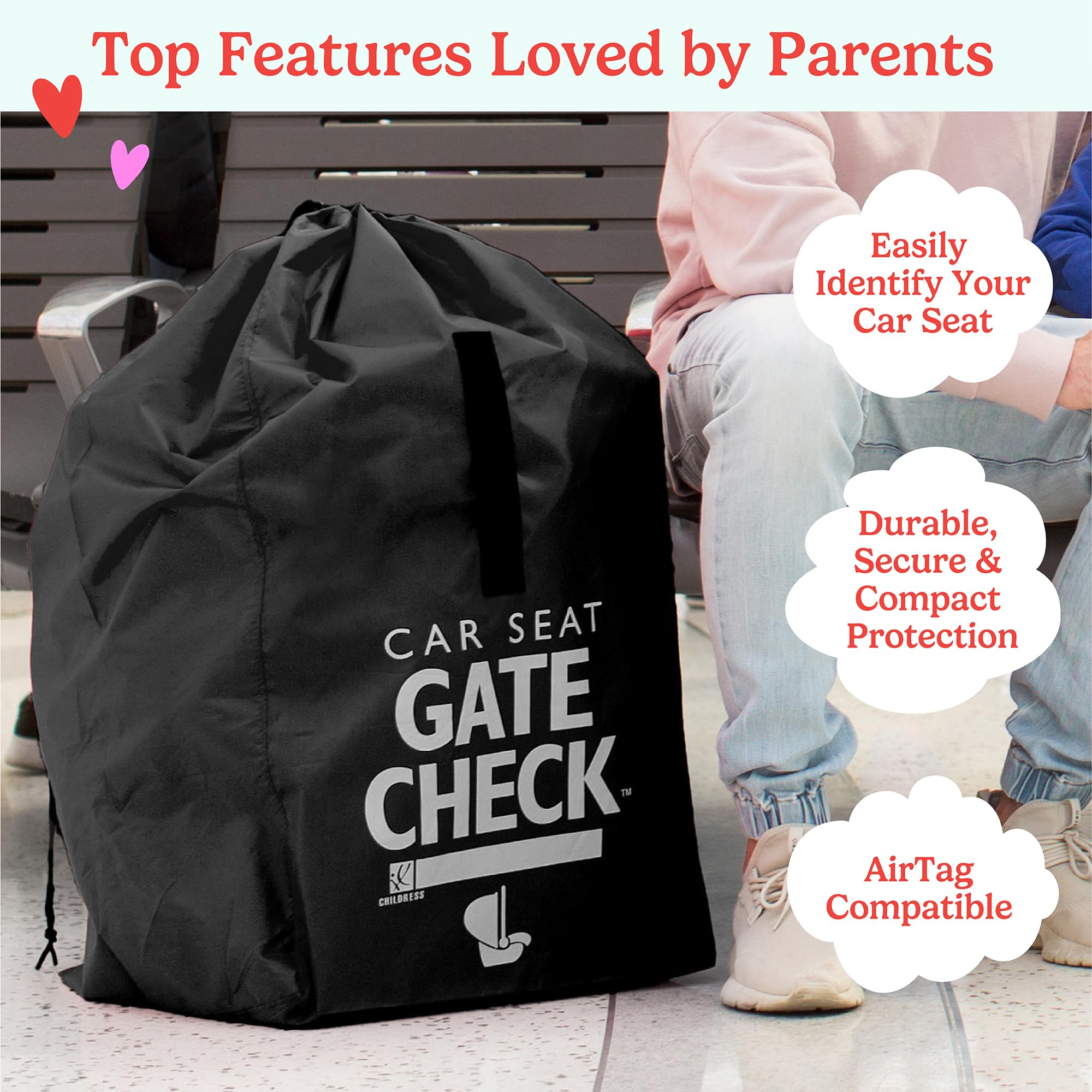 GATE CHECK CAR SEAT TRAVEL BAG - Specially designed for gate check, this lightweight cover bag fits all child car seats and offers reliable protection and convenience for families on the move