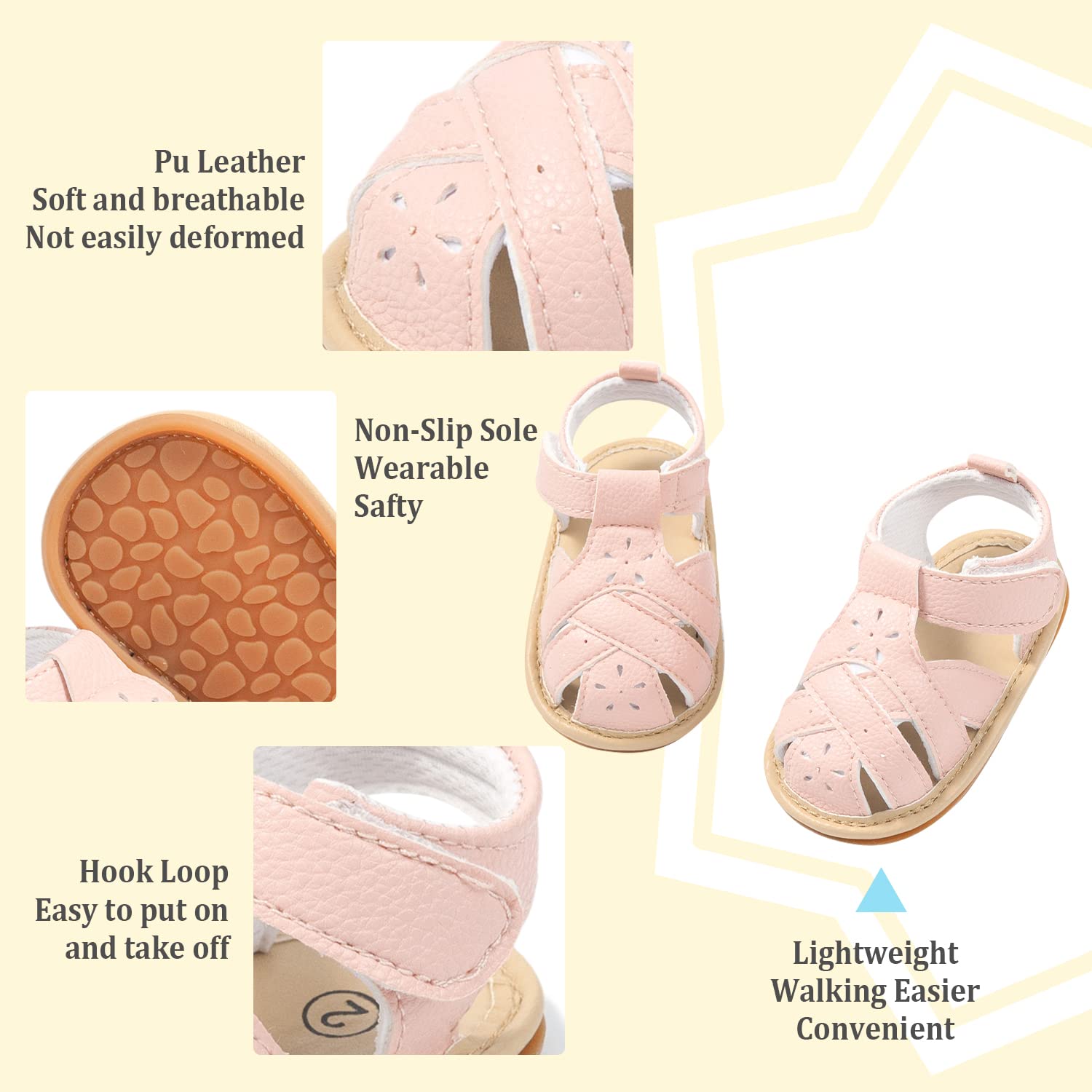 SOFT: Lightweight kid-friendly PU leather and rubber material, soft and comfortable, breathable and designed. Non-slip rubber sole keep baby’s feet easier and safer play