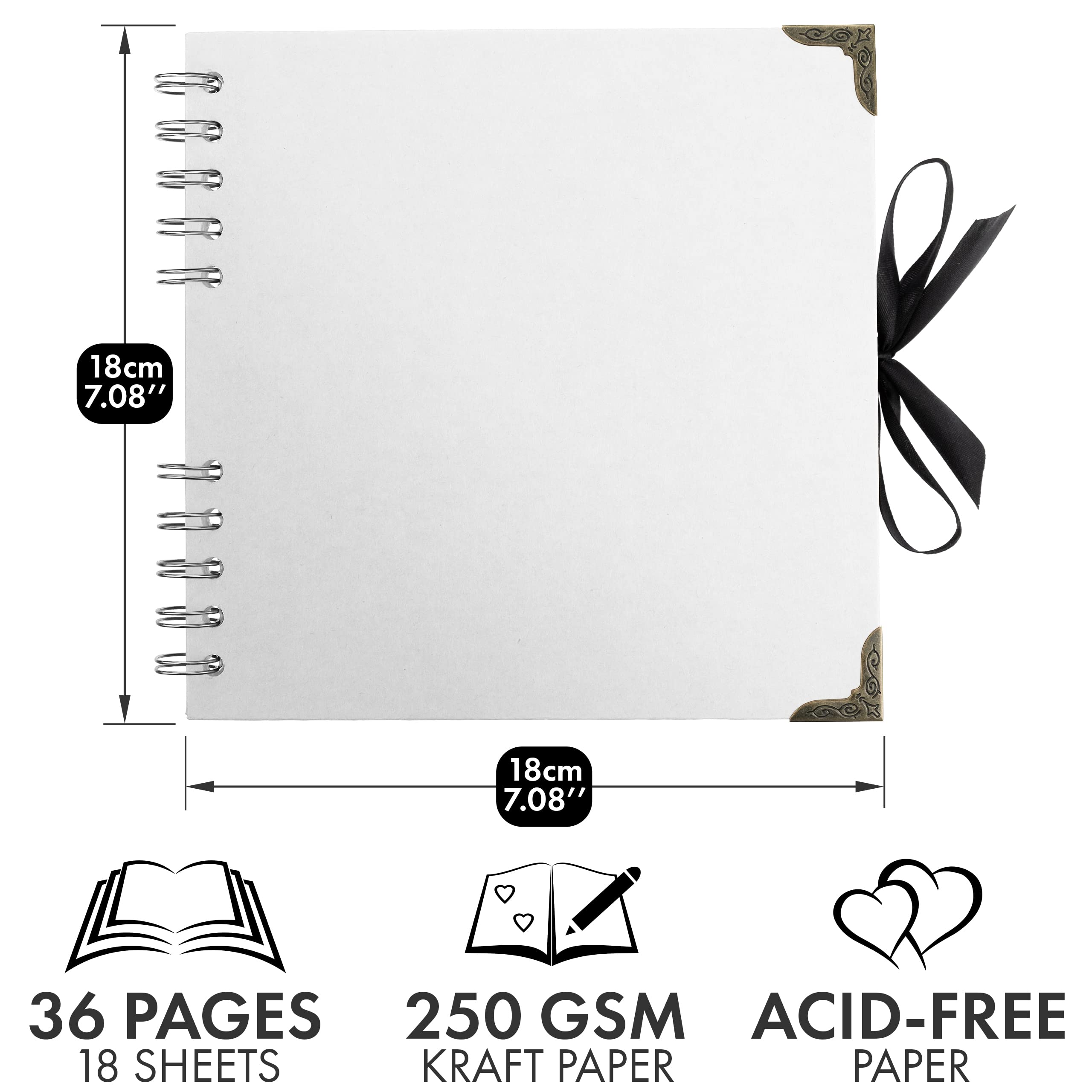 This 18 x 18 Cm scrapbooks is durable and suitable for long term storage for you and your loved ones beautiful memories. It has 18 sheets, 36 pages of high quality thick paper, designed with ribbon closure, hard cover and corner protectors