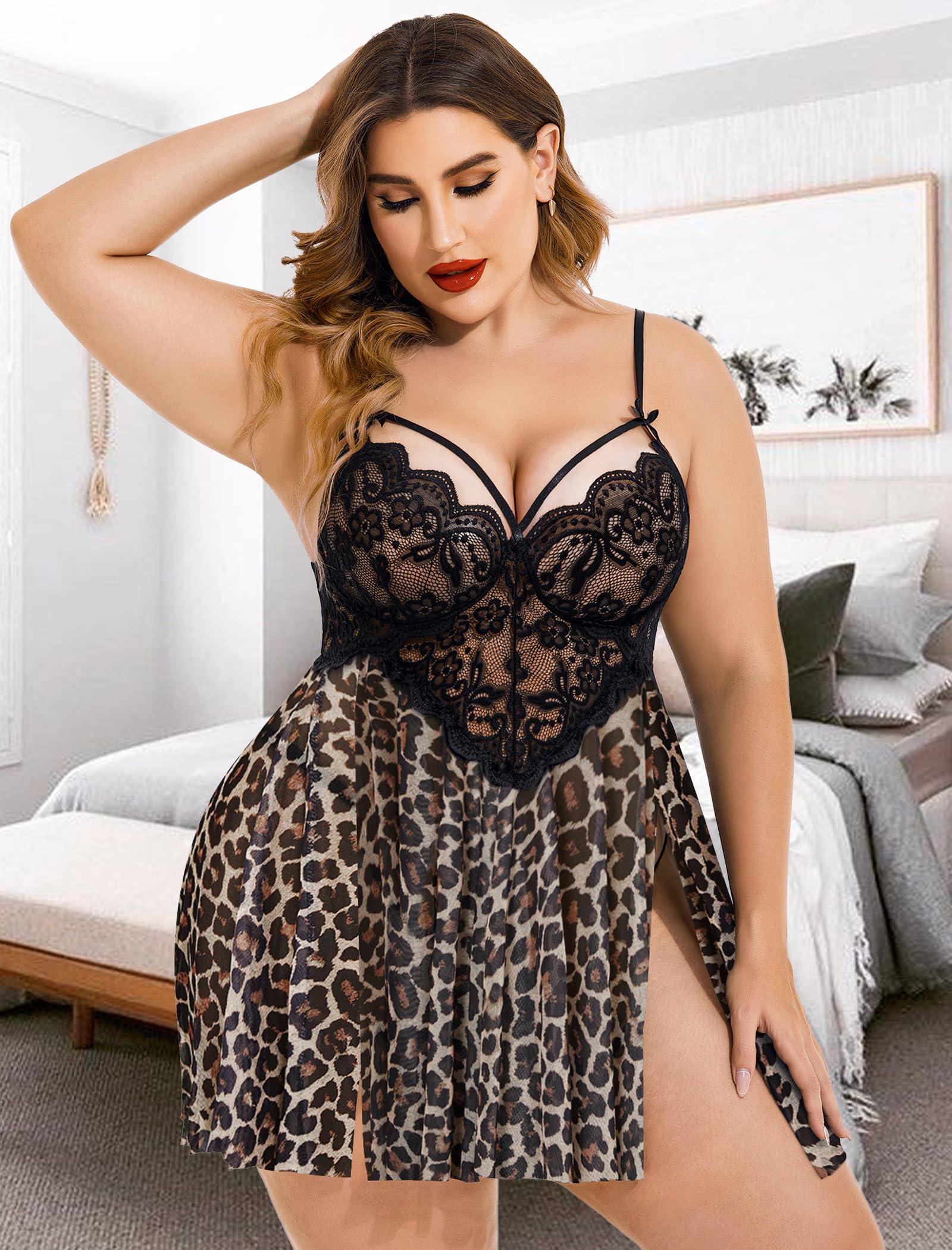 Style: Lingerie for women plus size with mesh hem,attractive high slit design makes you looks more sexy and charming.If you are bigger girl and have trouble finding lingerie that fit properly, this plus lingerie for women is perfect for you. It hides all the rolls you want to hide, while still apparently look sexy too!