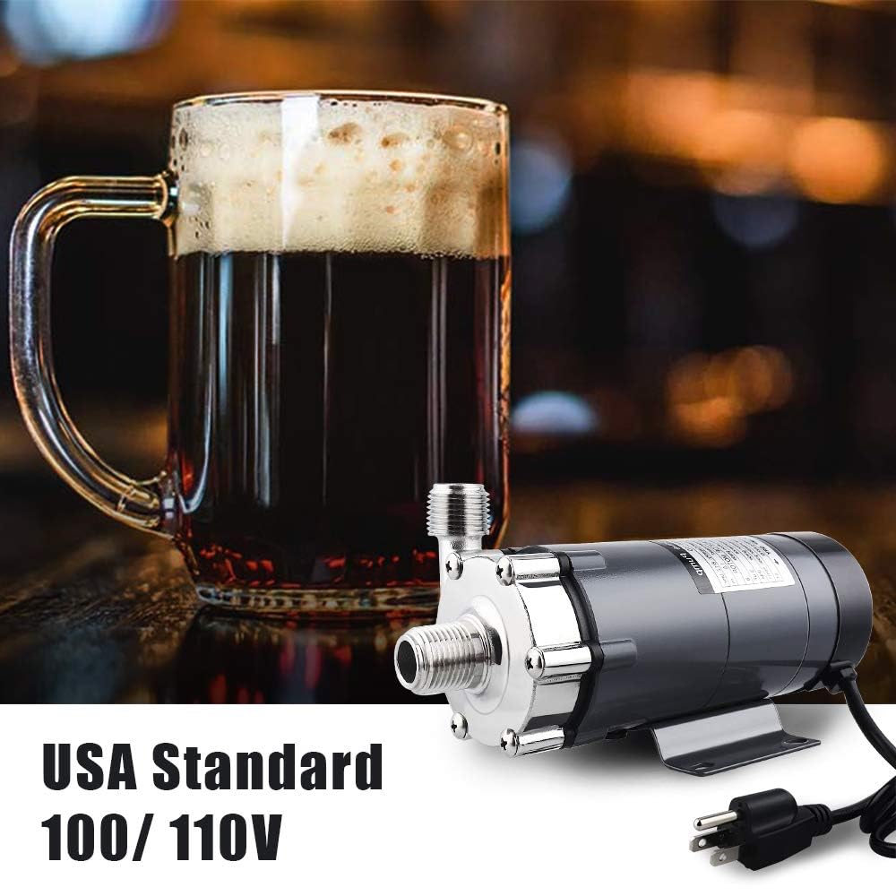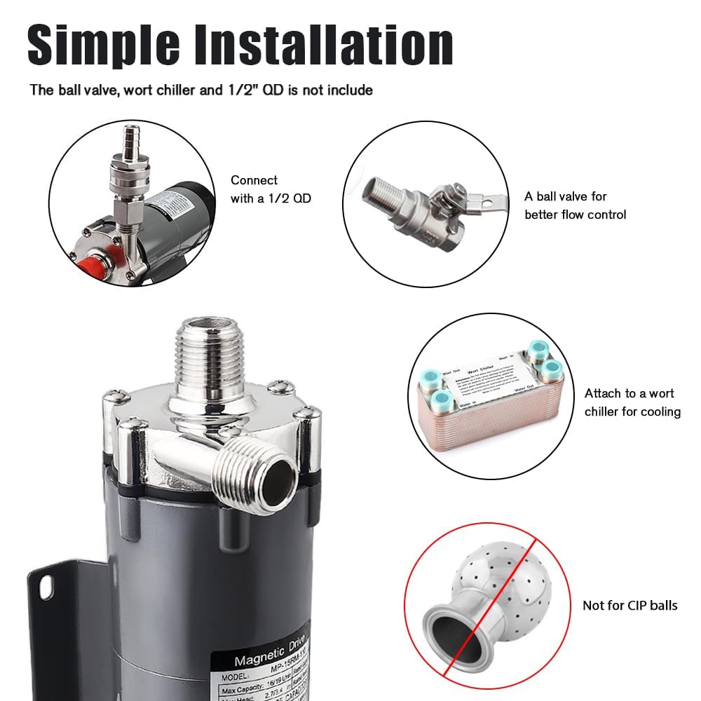 Safely Transfer Liquid: note: This is a magnetic drive pump, not a self-priming pump, please install the pump at least 12 inches lower than your vessel, the pump needs to be filled with liquid before turning on the power, otherwise the liquid will be transported extremely slowly (mishandling). Not for use with high viscosity liquids.Transferring liquids is an important part of any brew operation, and the easiest and safe way to transfer liquids is to use the magnetic pump, the propeller will magnetically circulate liquids