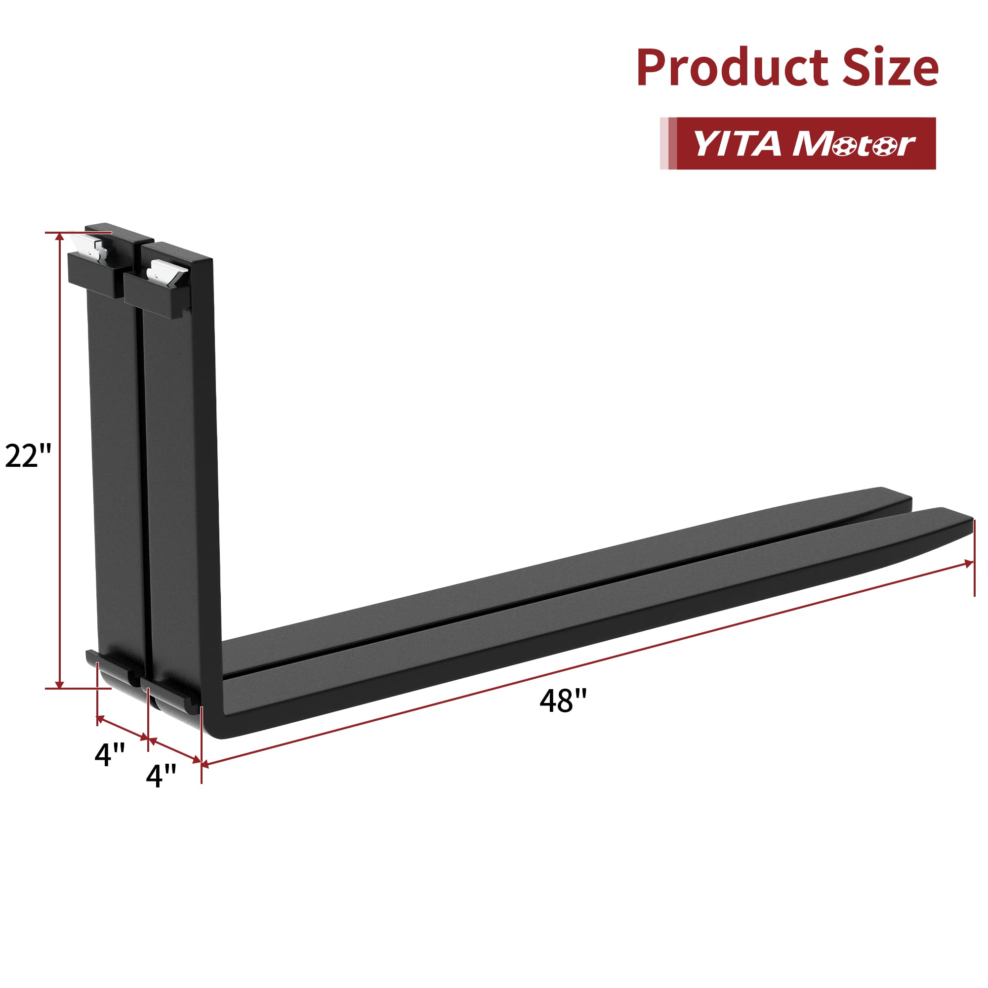 Sturdy Build with Essential Specs: Weighing 138 lbs, the set includes 1x pallet forks frame, 2 x pallet forks blades and each measuring 48"L x 4"W x 22"H. Designed for strength and utility in demanding environments.