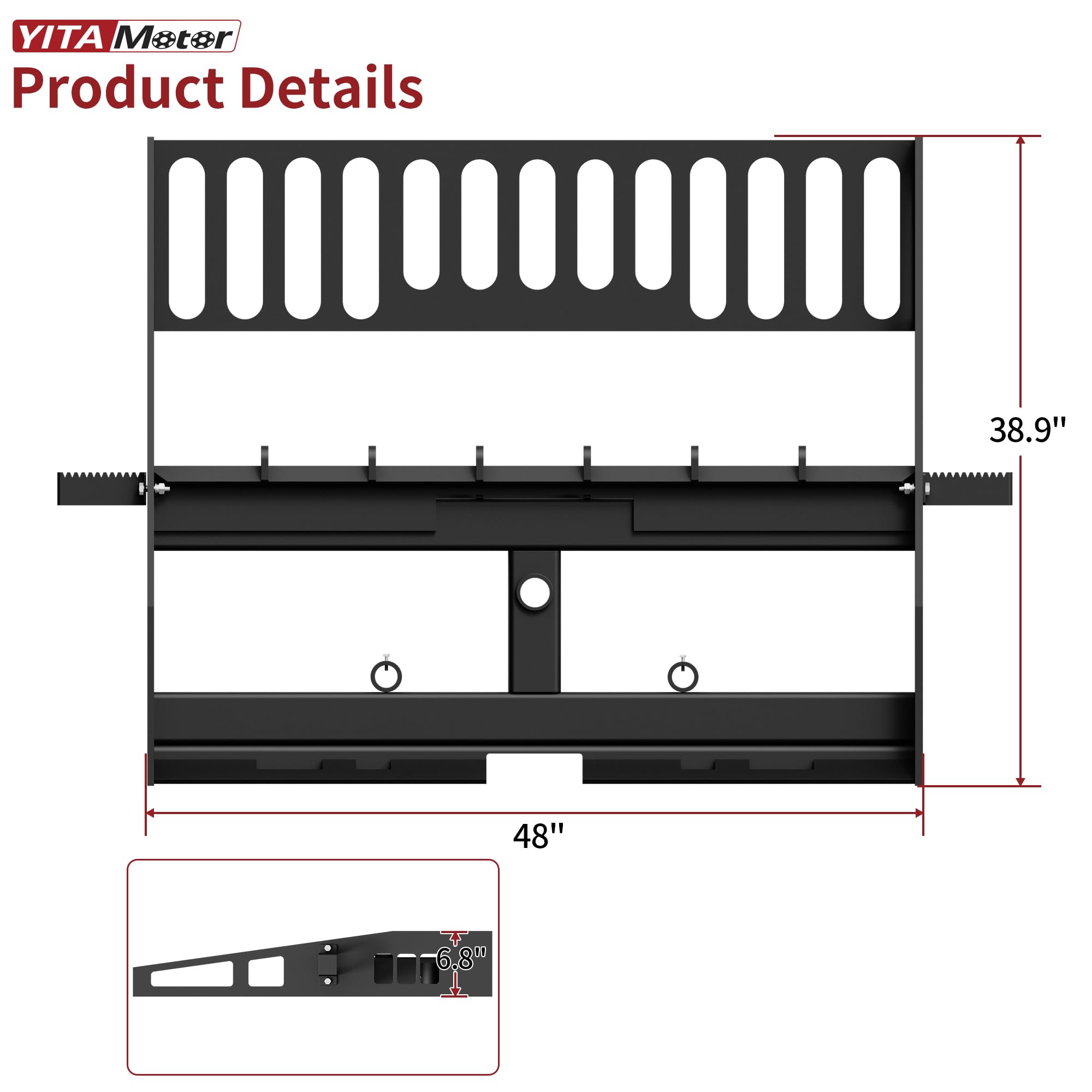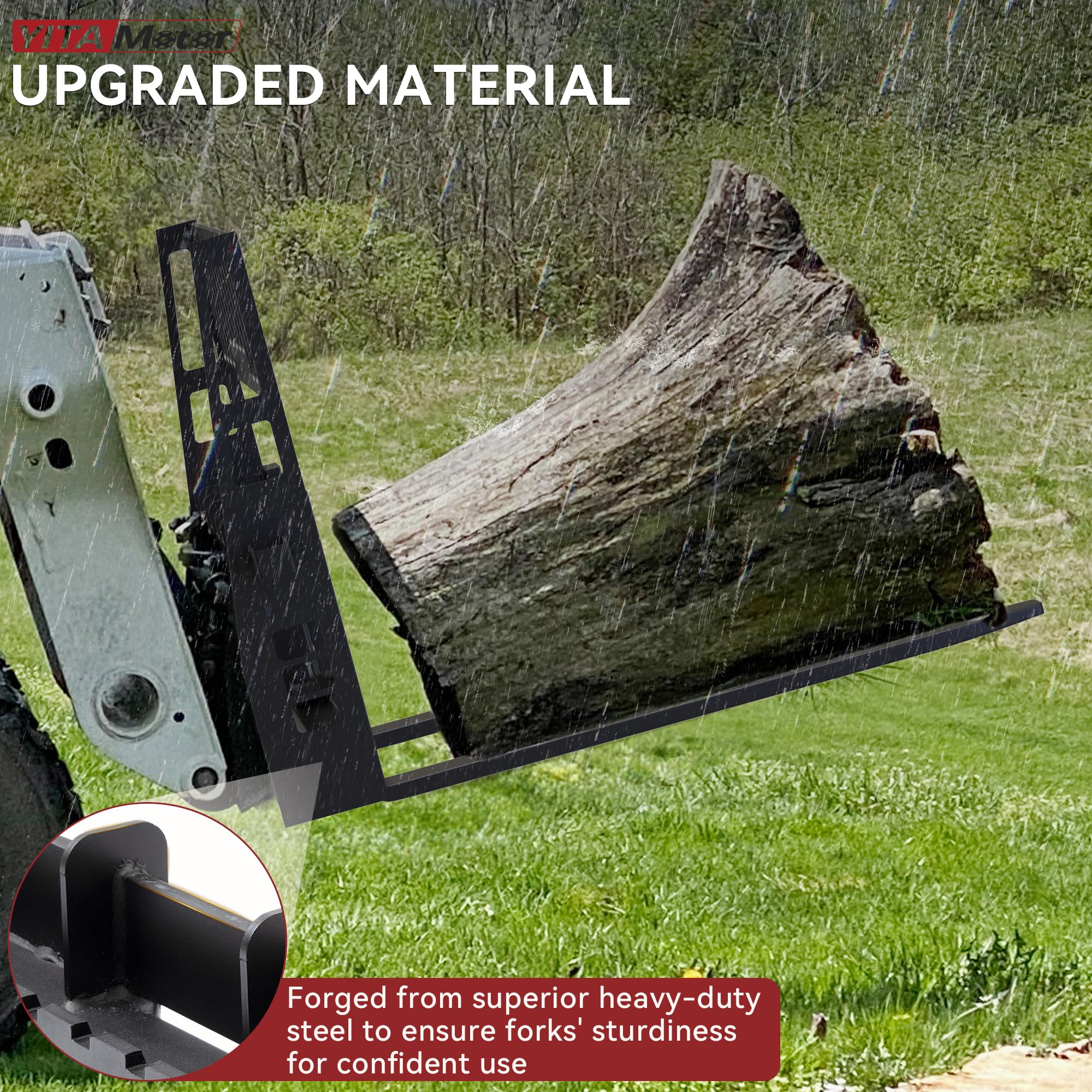Removable & Adjustable Fork Blades: The slot-designed forklift blades allow easy installation and removal. Adjust the distance between blades from 17" to 37" to match different load sizes and improve operational flexibility.