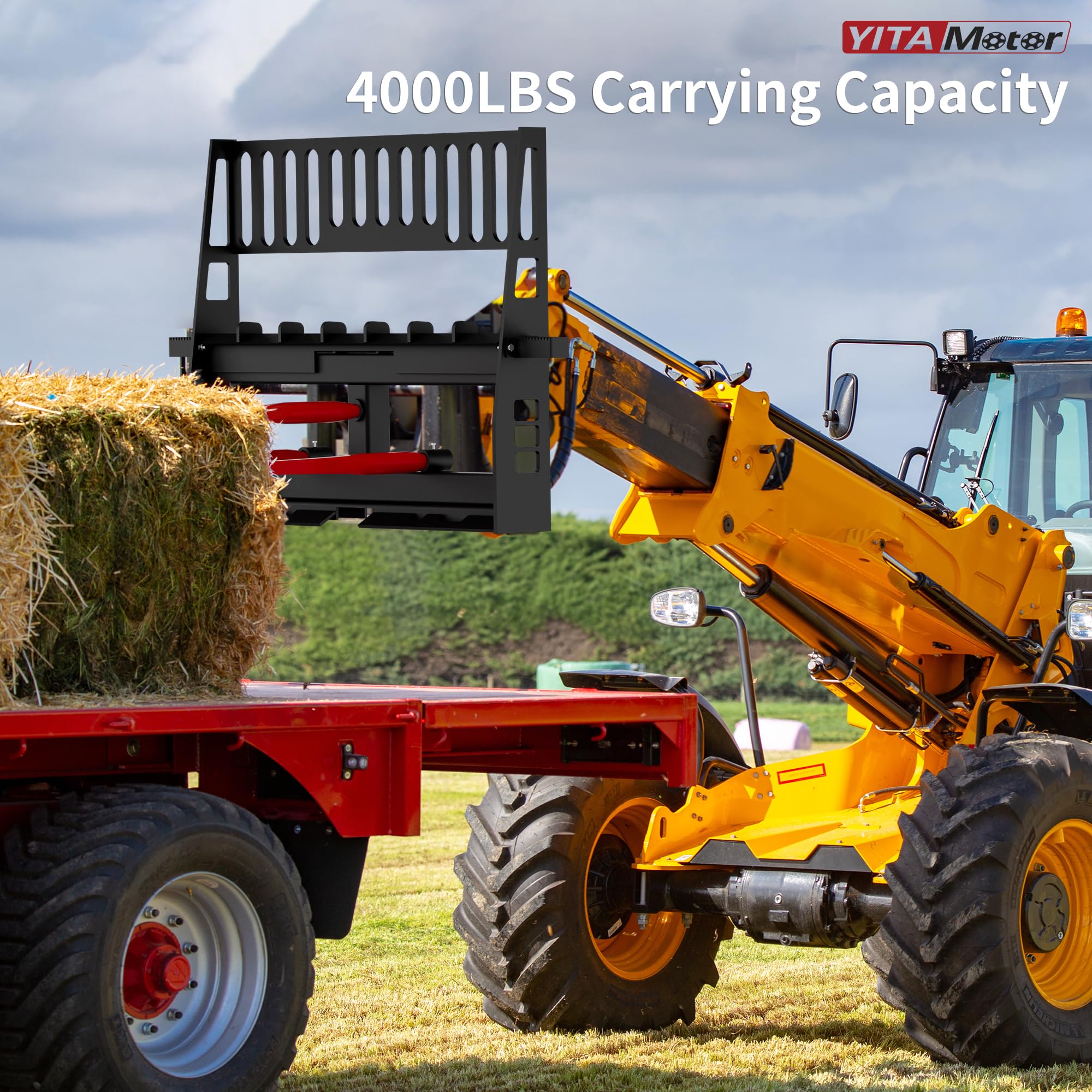 4000 lb Towing & Lifting Capacity: Constructed with durable stainless steel, this 45" pallet forks frame with 48" blades handles heavy loads and towing tasks with ease. It offers reliable performance for tractors and loaders when moving trailers and other equipment.