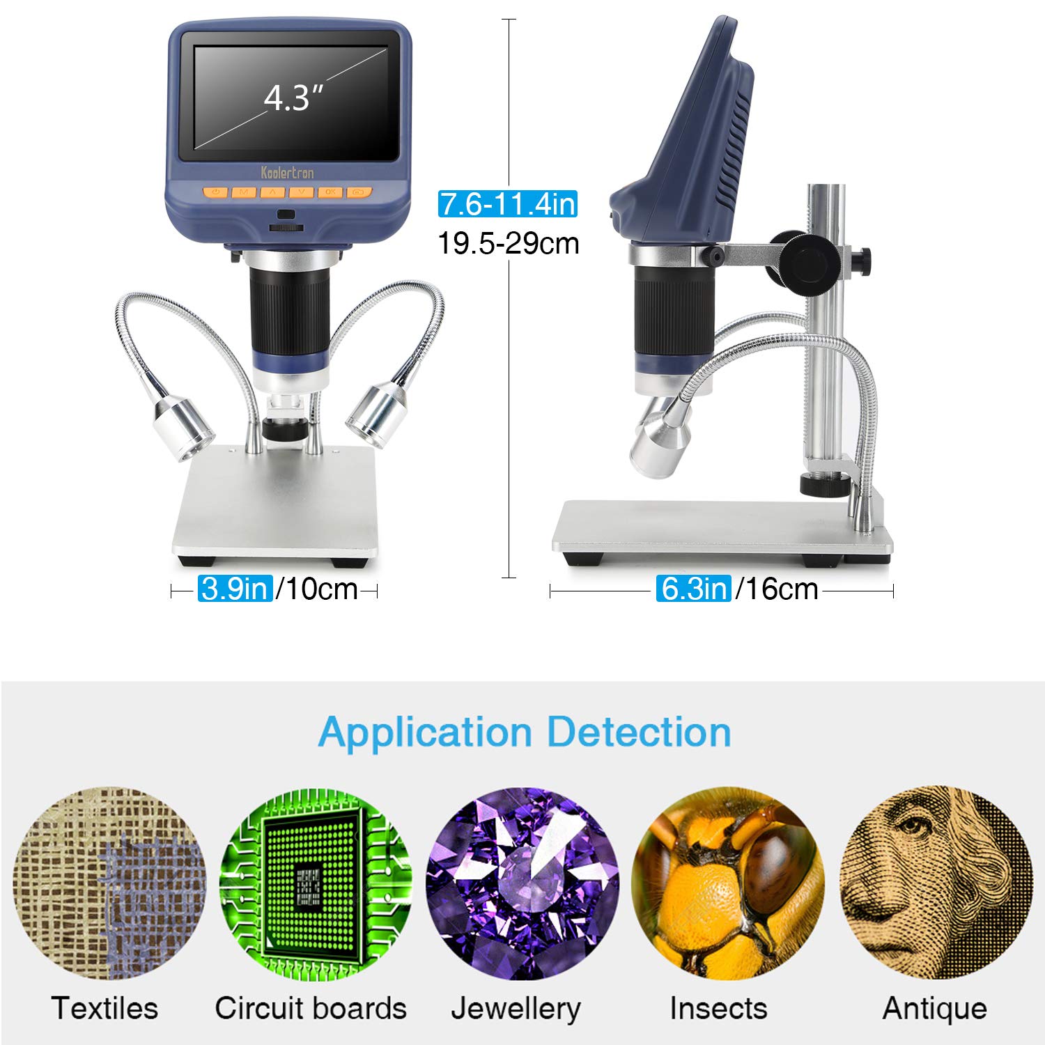 The wide range of applications, one microscope can solve problems in at least 6 fields, such as PCB, Insect, Jewelry, Cells, LED Screen, Watch/Clock. And its appearance design combines more ergonomic consideration, provides users with better experience.
