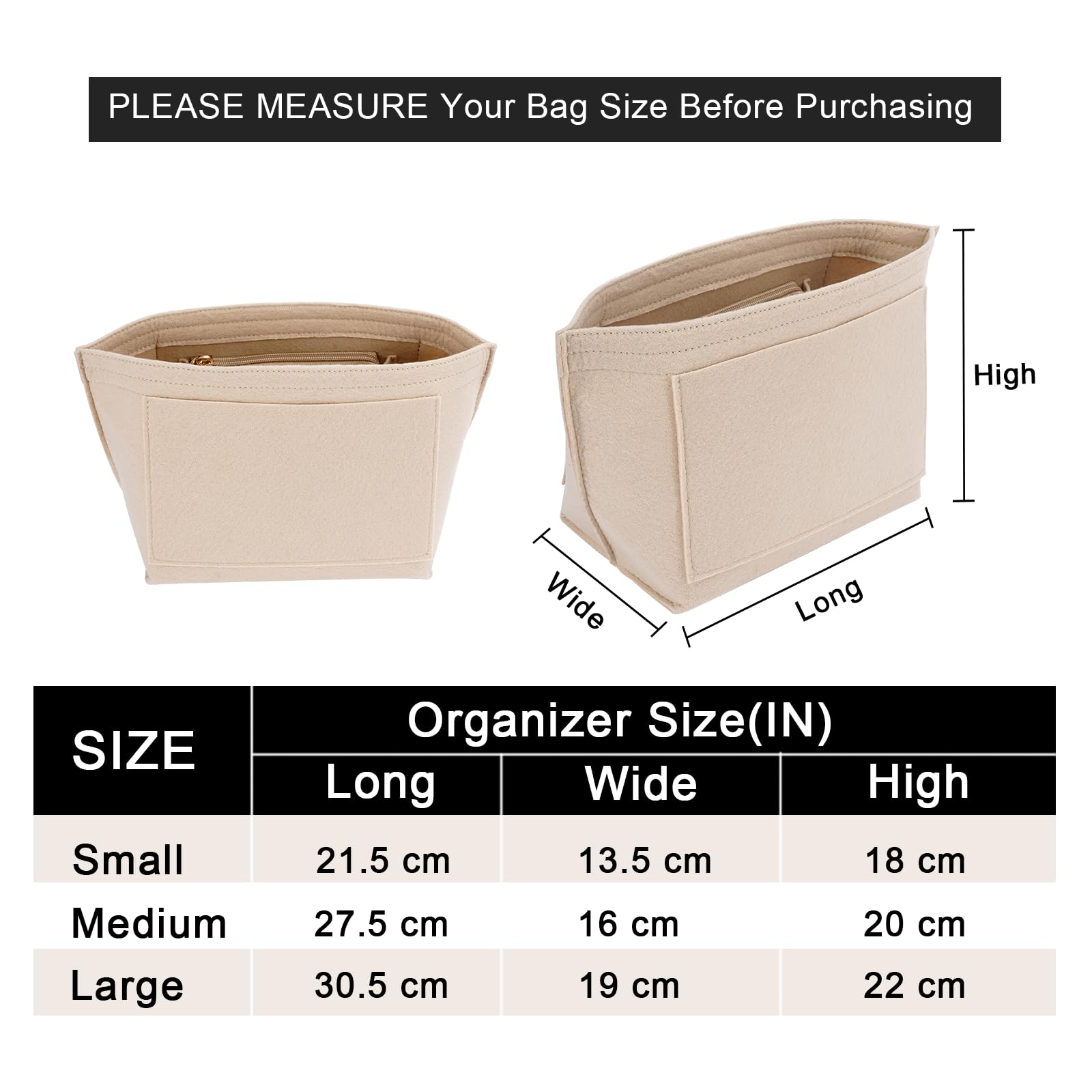 💞Size of the felt purse organizer insert - Medium: 10.8" (L)*5.9" (W)*7.9" (H) , suitable for Medium Size of long handle of Le pliage handbag, or similar size Tote Handbag,It will be more suitable if it is LESS than 0.5-1 inches to ensure a perfect fit,Please comfirm your bag size before purchasing again, thanks.