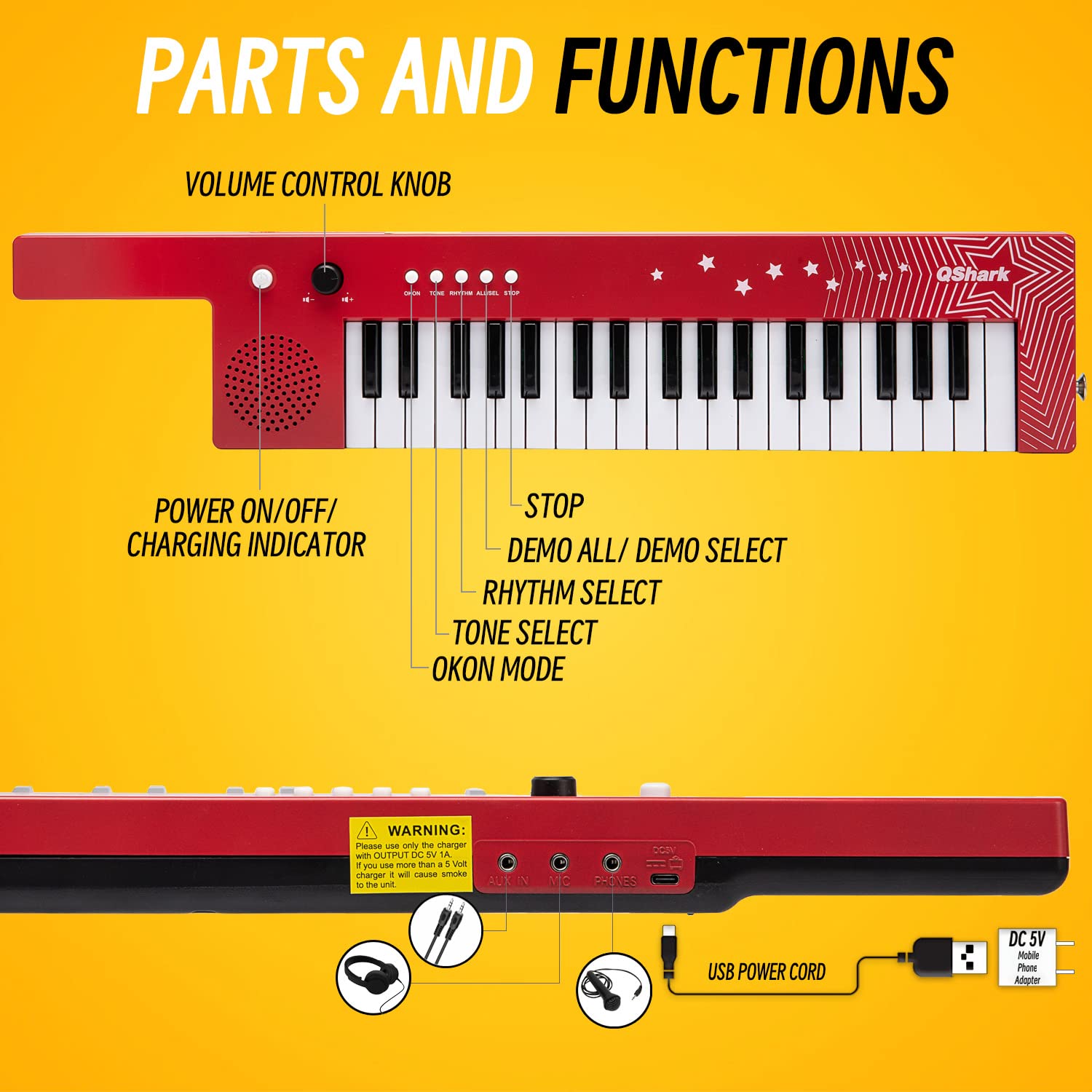 4 Tones & 4 Rhythms & 10 Demo Songs: Features 4 instrument sounds and 4 audio rhythms; OKON Mode for 10 preset demo songs; includes volume control knob, headphone jack, and AUX input; suitable for ages 3 4 5 6 7 8 9 10 11 12; adults can enjoy too