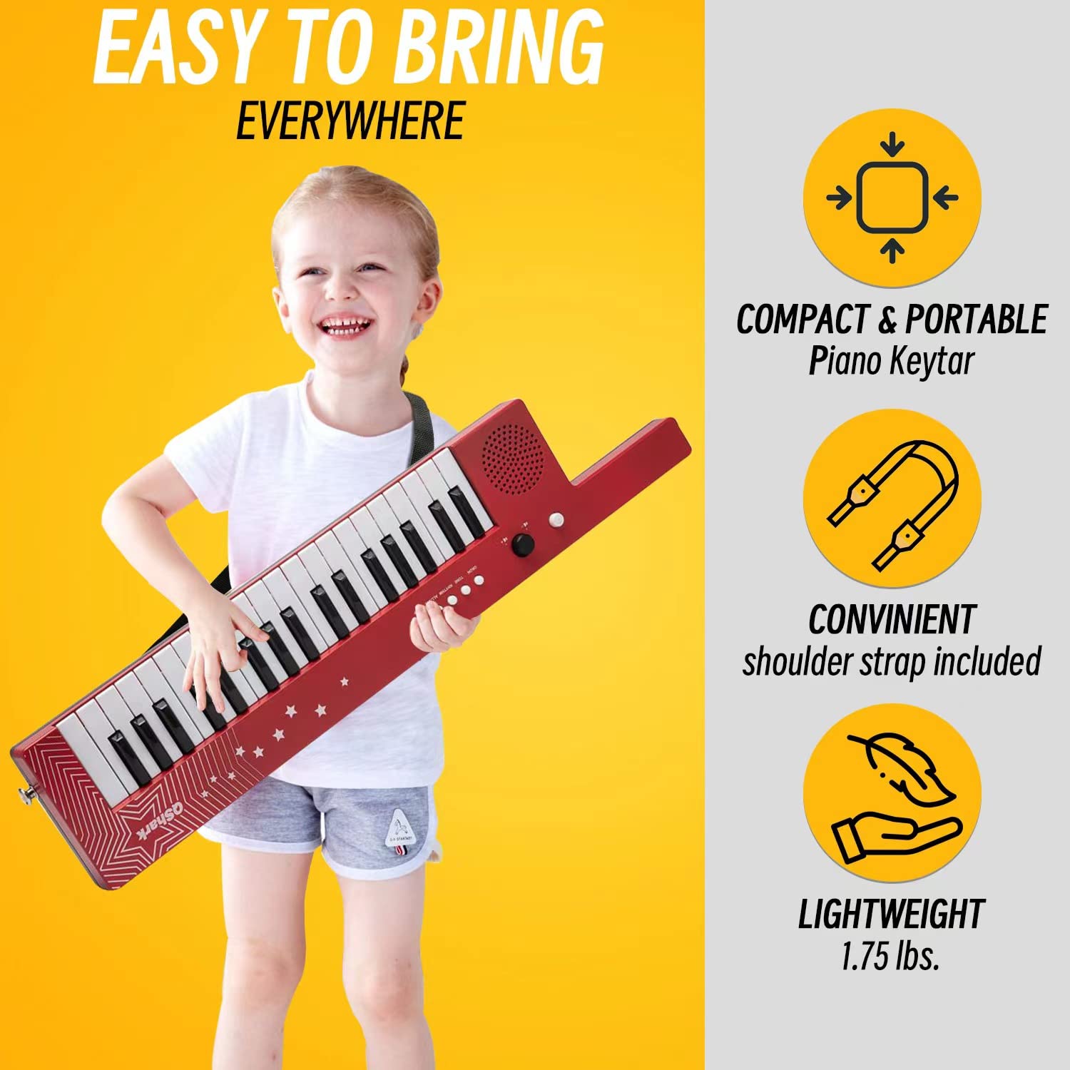 Easy to Carry Keytar Design: Weighs only 1.75 lbs; designed as a keyboard guitar with a carry strap; portable for live performances; fun and easy to carry