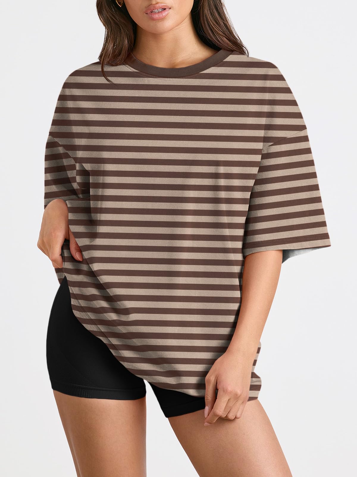 Design:Short sleeve shirts,round neck,loose fit tops,oversized casual blouse,solid color never out of style,easy to match with every style.