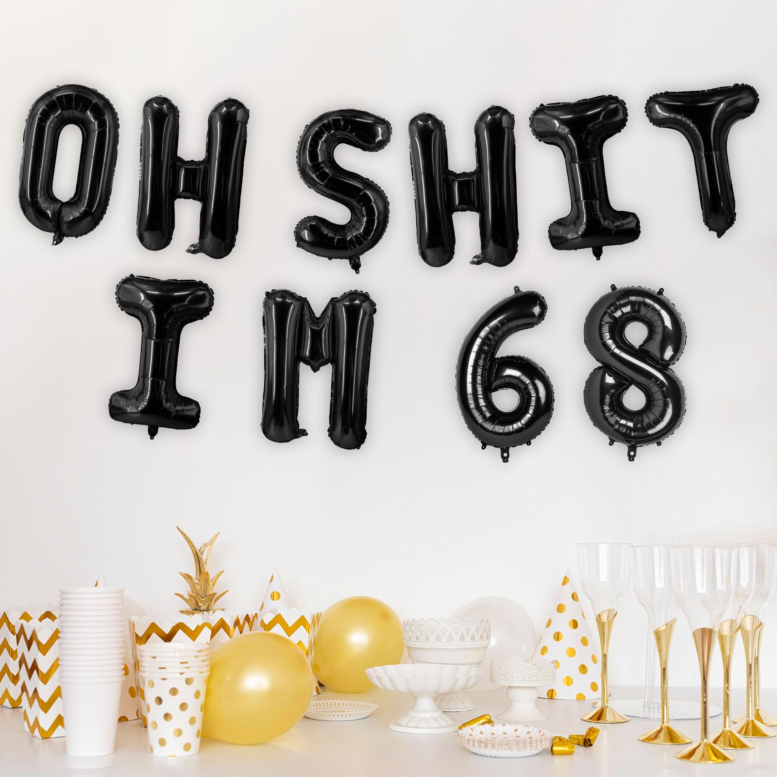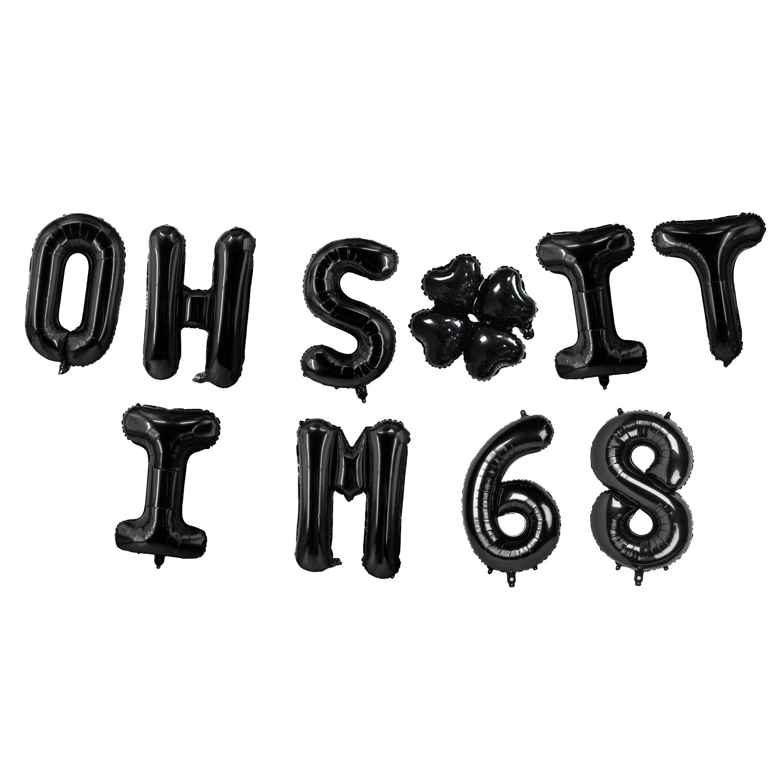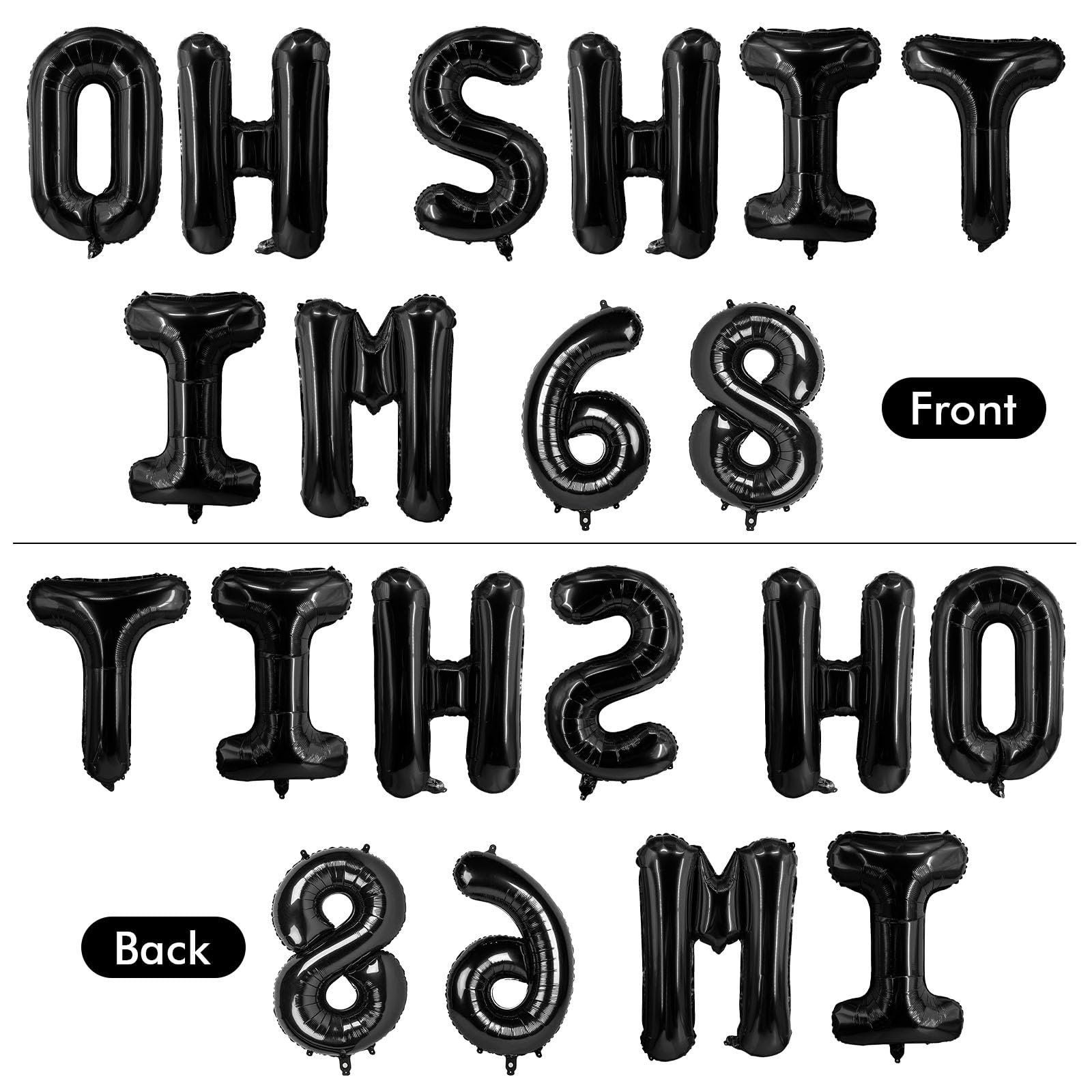 Funny Birthday themed decorations: All balloons are printed with black color(O H S H I T I M 6 8), Make your birthday party more fun