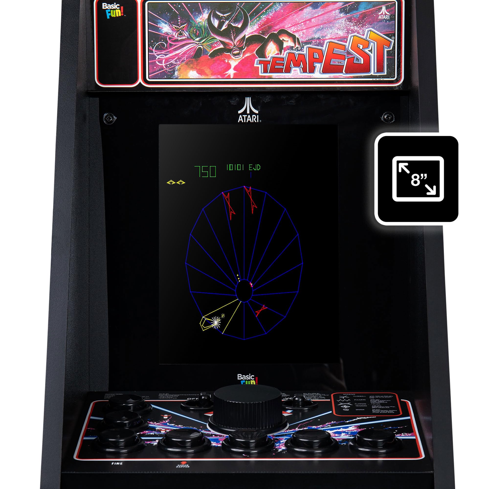 Dive into vector-fueled action with the Arcade Classics Counter Series Atari Tempest Arcade Game—featuring 5 groundbreaking classics in one electrifying countertop cabinet! Get pulled into the vortex in Tempest, pilot through gravity wells in Gravitar, make precision landings in Lunar Lander, defend your castle in Warlords, and race through sci-fi levels in Major Havoc. Each title is faithfully reproduced with crisp visuals, original soundtracks, and arcade-accurate gameplay. Take full control with the built-in spinner—just like the original Tempest cabinet—and watch the action come alive on the oversized 8" liquid crystal screen. Designed for solo arcade domination, this 1-player cabinet comes with an AC adapter so you're ready to plug in and play. A must-have for collectors, retro purists, and Atari fans ages 8+!