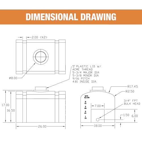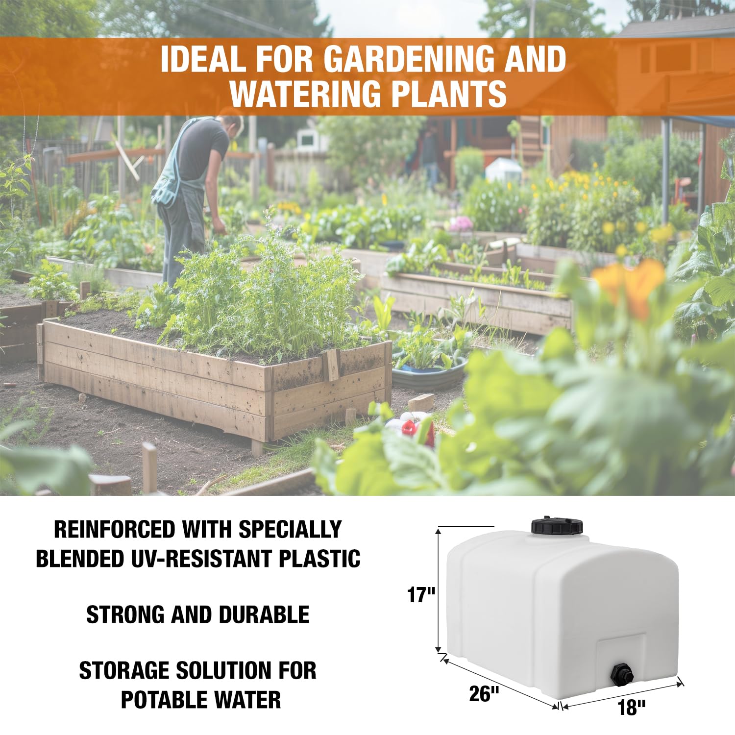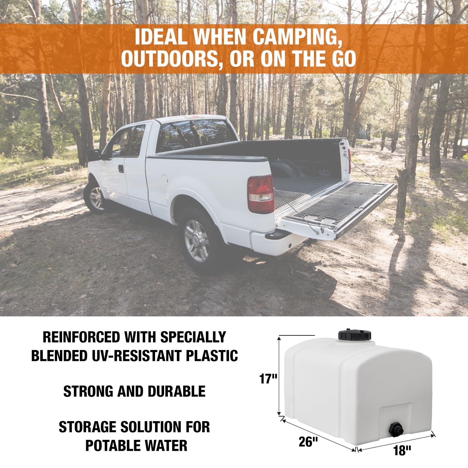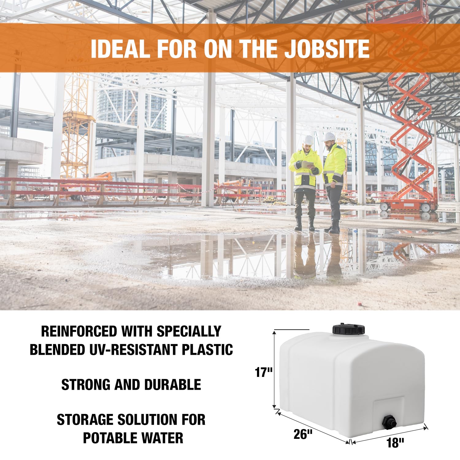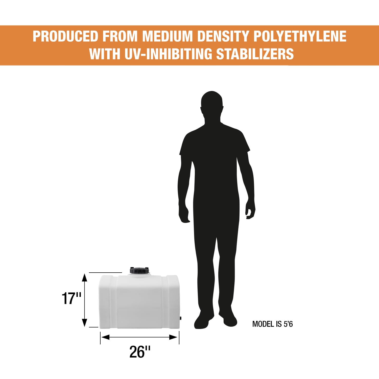MADE IN USA, SPEC'D FOR TOUGH JOBS — For non‑flammable liquids up to 140°F contact temp; easy‑clean plastic water tank with 26‑gal capacity and 3/4" NPT outlet—reliable as an RV water tank for camping, agriculture, or industrial tasks.