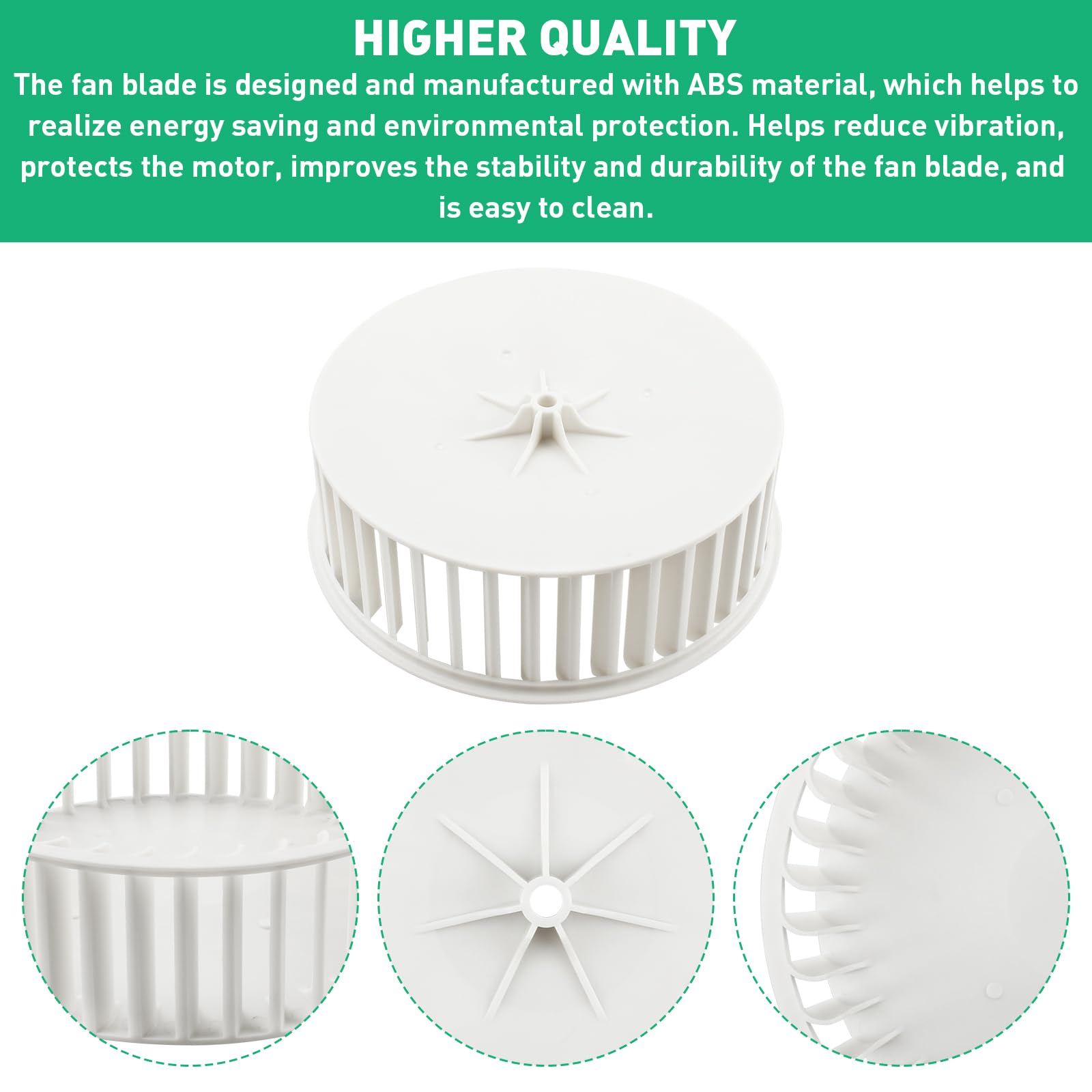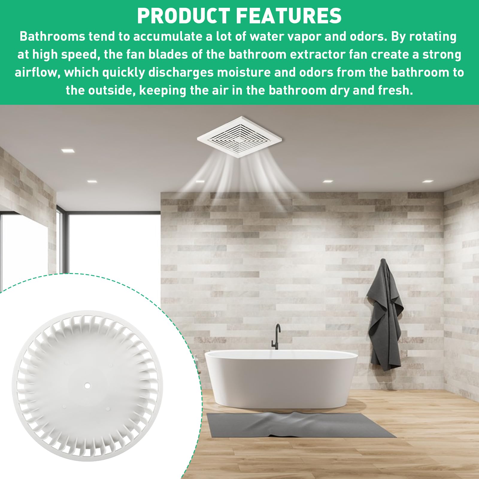 【Product Features】 Bathrooms tend to accumulate a lot of water vapor and odors. By rotating at high speed, the fan blades of the bathroom extractor fan create a strong airflow, which quickly discharges moisture and odors from the bathroom to the outside, keeping the air in the bathroom dry and fresh. 【Compatibility】5901A000 Fan Blower Wheel Assembly Fits for Broan Nutone 671, 672, 683, 8662, 8672, 8812, 8814, 8832, 8833, 671R, 672R, 8662NL, 8663DG, 8663F, 8663FL, 8663M, 8663MAB, 8663MBR, 8663MN, 8663NLM, 8663NLMAB, 8663NLP, 8663NP, 8663P, 8673DG, 8673NP, 8673P, 8814R, 8832N, 8832SA, 8832WH, 8833, MH8661N, QT100FL, QT100L, QT100LH, QT100LHM, QT100LM, QT110, QT110H, QT80, QT9093AB, QT9093BR, QT9093CH, QT9093WH, VL3668MAB, VL3668MBR, VL3668P, 750, N750, 751, 752, 0696B000, 0695B000, Broan752, 671 R 【Product Size】Dimensions: 6.125”Bore: 1/4"(0.25") 【Higher Quality】The fan blade is designed and manufactured with ABS material, which helps to realize energy saving and environmental protection. Helps reduce vibration, protects the motor, improves the stability and durability of the fan blade, and is easy to clean. 【After-Sales】If You Have Any Questions About The Product, Or Have Any Questions After Receiving The Product, Please Be Sure To Contact Us First! We Will Try Our Best To Solve The Problem For You!