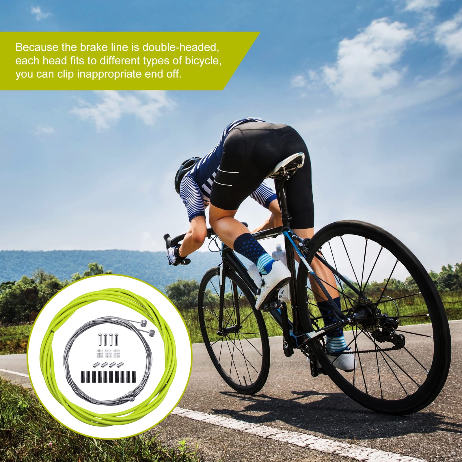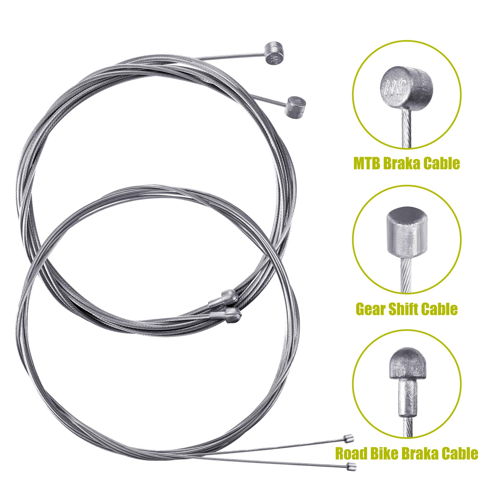 Applicable scope: bike shifter and brake cables can be applied to mountain bike, road bike, small wheel bike, foldable bike, good for maintenance cables. Note: because the brake line is double-headed, each head fits to different types of bicycle, you can clip inappropriate end off.