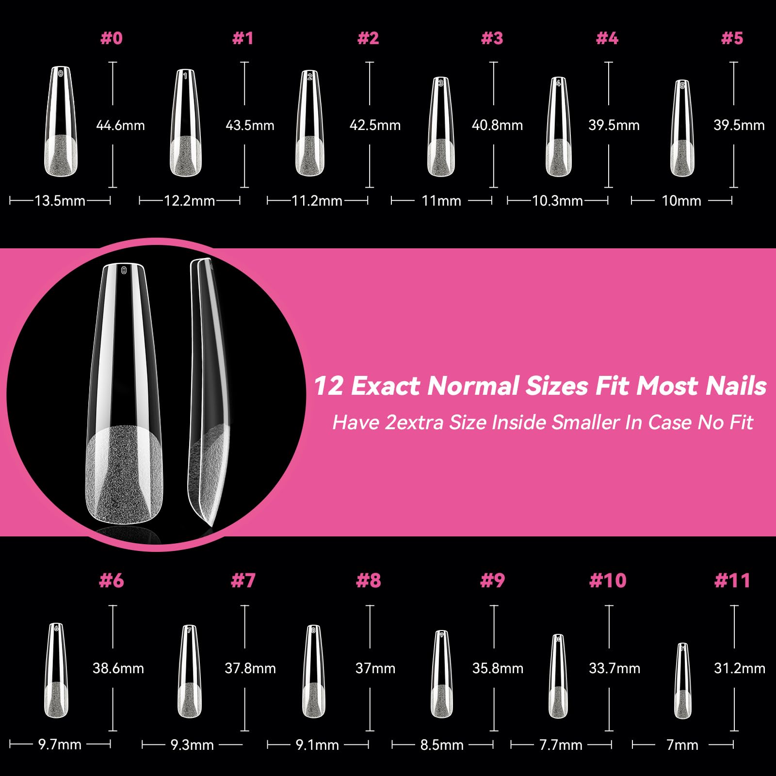 ❤【12 Sizes Pre-numbered】We provide a comprehensive range of 12 nail sizes for you to find the most suitable one. Our nail boxes are labeled with pre-numbered gel nail tips (0-11) sizes, making it easier for you to quickly find the right size.