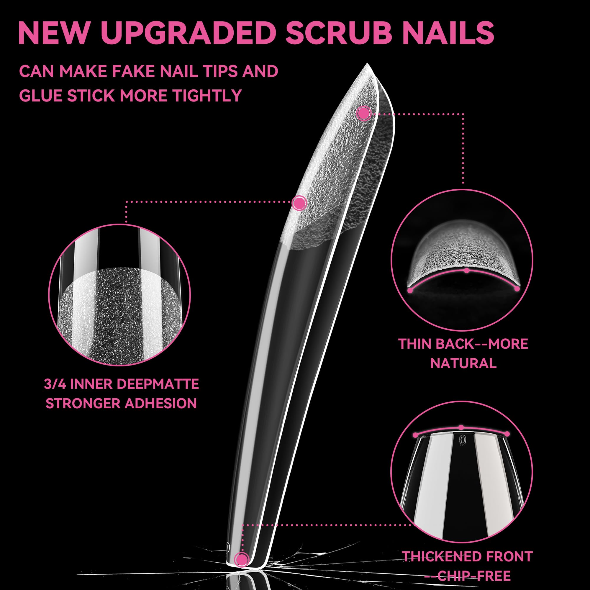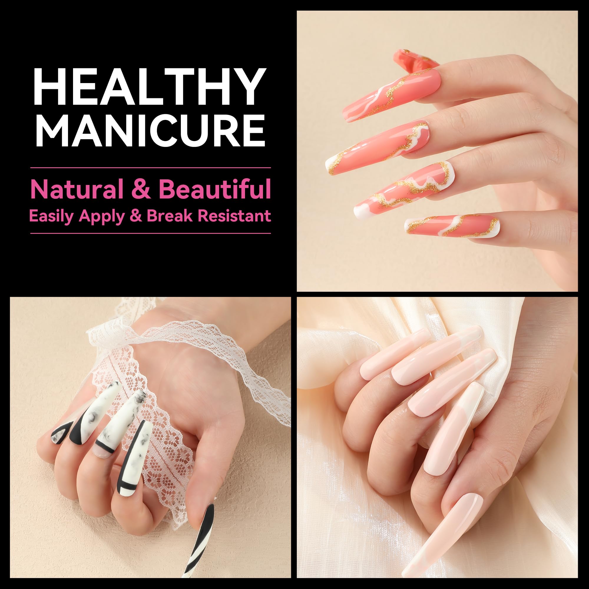 💅【Natural Fit Effect】 - The soft long gel nail tips feature “ Thin back edge, thick front edge”. The thinner back edge can make the full nail tips fit your nails better. The clear nail tips makes the color more visible.The thickened front edge makes it not easy to break or bend, having longer lifespan. Just like your natural nails!