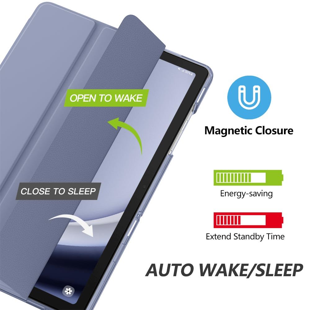 Auto Wake/Sleep: Built-in magnetic strip, automatically wakes or puts your tablet to sleep when the lid is opened and closed. this Tab A9 Plus Case Protects and extends battery life
