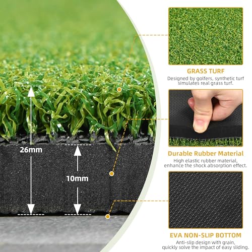 First-rate synthetic turf: This commercial-grade turf with 16mm long grass features tear-resistant layers for enhanced durability. It also offers a fairway-like impact, which is ideal for any swing style and boosts confidence in your practice sessions