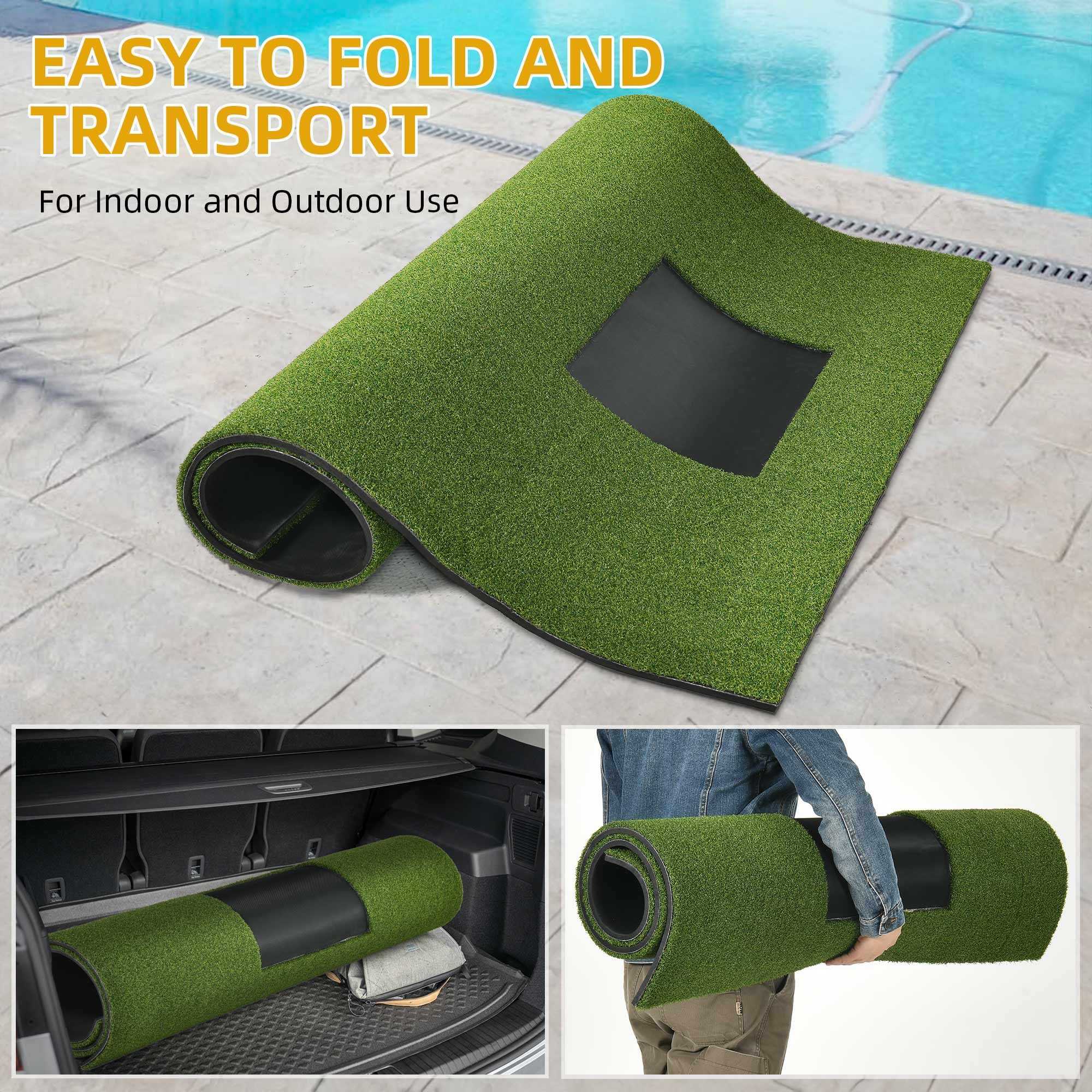 Swing Point Surface Mat: Record your golf swing at impact, highlighting key aspects of corrective training; instantly identify and fix hooks/slices, rough/thin shots, and ball hitting tendencies. Grass surface: simulates the real golf course, reduces racket friction, protects the racket, and increases ball feel