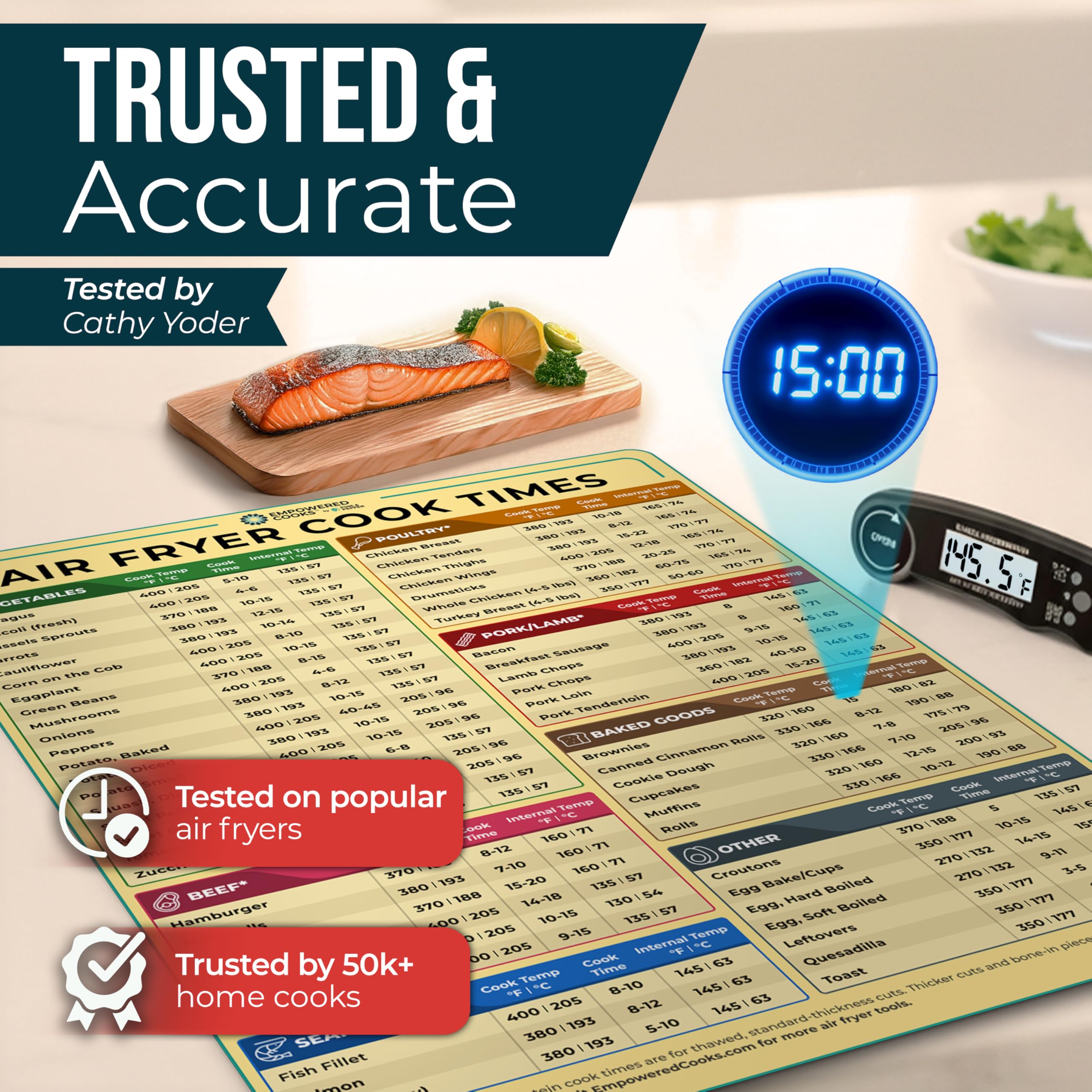Complete Air Fryer Cooking Guide: This air fryer accessories magnetic cheat sheet is your essential reference for accurate cooking times, temperatures, and internal food temperatures for over 80 popular foods. A must-have for any kitchen, this air fryer cook times chart simplifies your cooking process with clear and precise guidelines