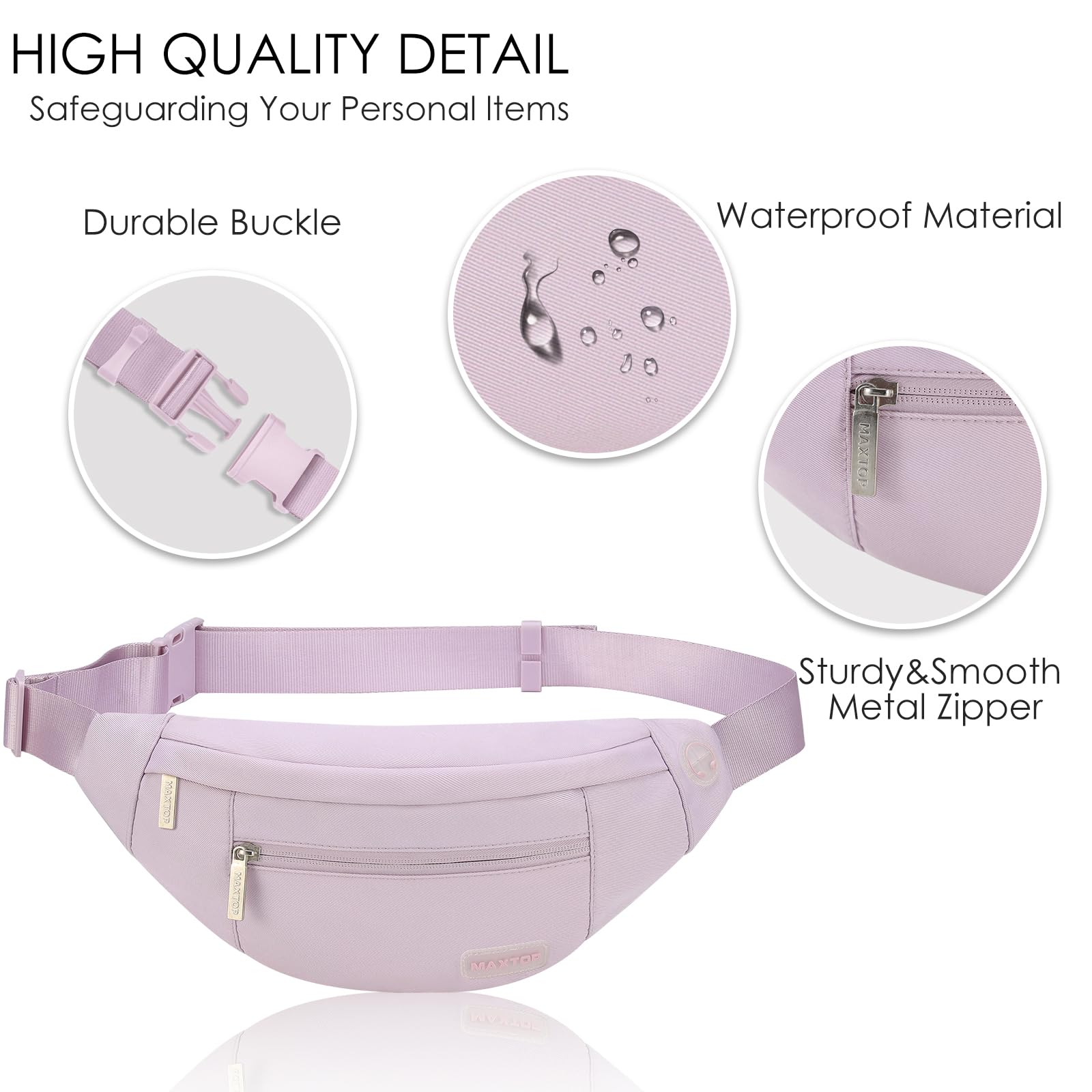 High Quality Crossbody bag for Comfortable and Long-Lasting Usage — Our Fanny Pack is made of high quality water-resistant,durable and light-weight material as well as solid smooth zippers.Ensure a secure & long-lasting usage.Notice: Water resistant for drops or splashes, but do not take it into the water.