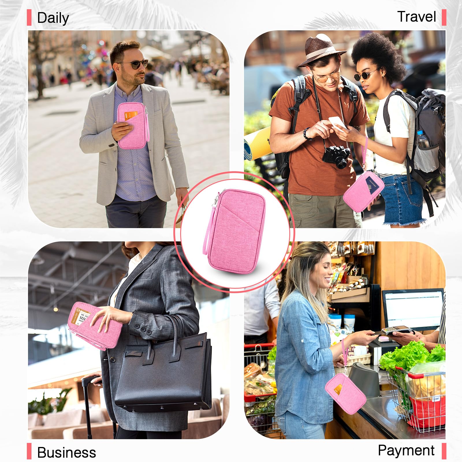 【Rfid Blocking Protective passport bag】Family passport holder for 1 2 3 4 5 6 can effectively protect your card from being scanned, including 4+2 passport pockets, 1 boarding pocket sleeve, 1 transparent pocket, 1 quick access pocket, 1 pen holder, 2 zipper cash pockets, 6 Card slots, a coin mesh pocket and detachable key chain.