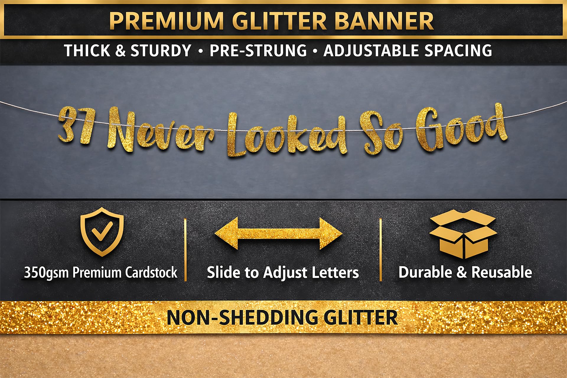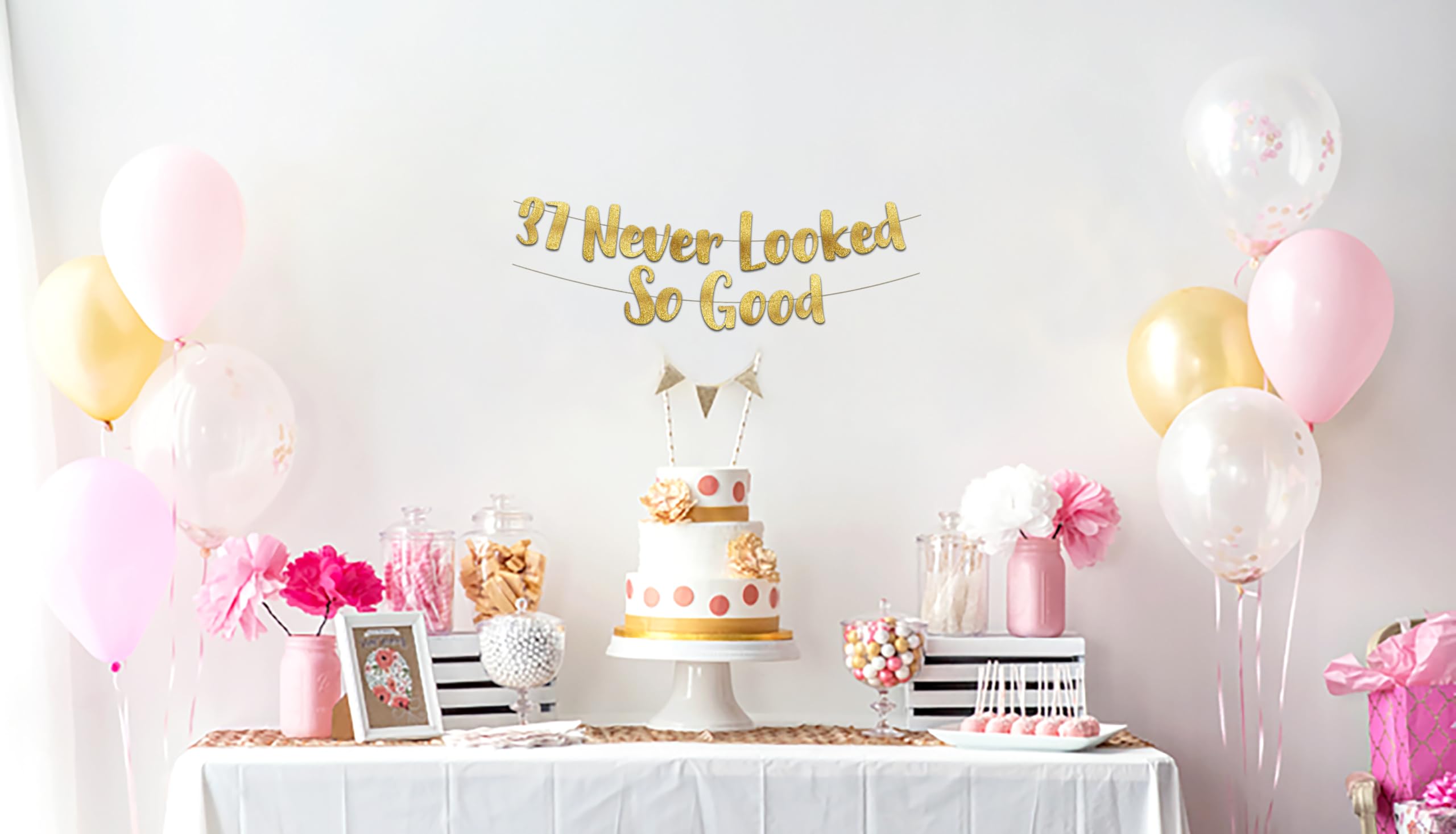 PERFECT FOR: A thoughtful 37th birthday gift idea for him or her. Hang as a photo backdrop, wall sign, or table centerpiece at home parties, office celebrations, backyard barbecues, surprise parties, and event spaces. Pairs with matching Sterling James Co. sashes, party packs, and balloons. Designed in the USA by a small family-run business.