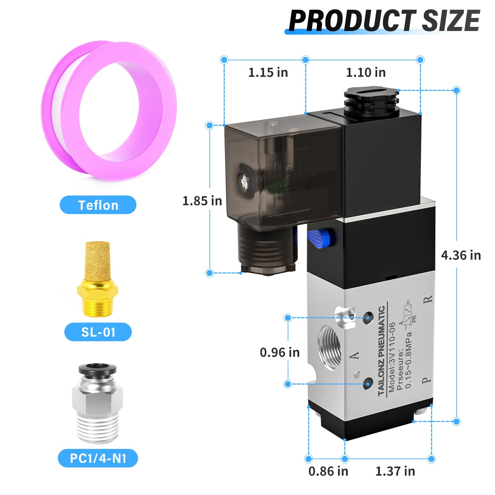 【Size】Outlet Port:1/8"NPT;Inlet Port:1/8"NPT