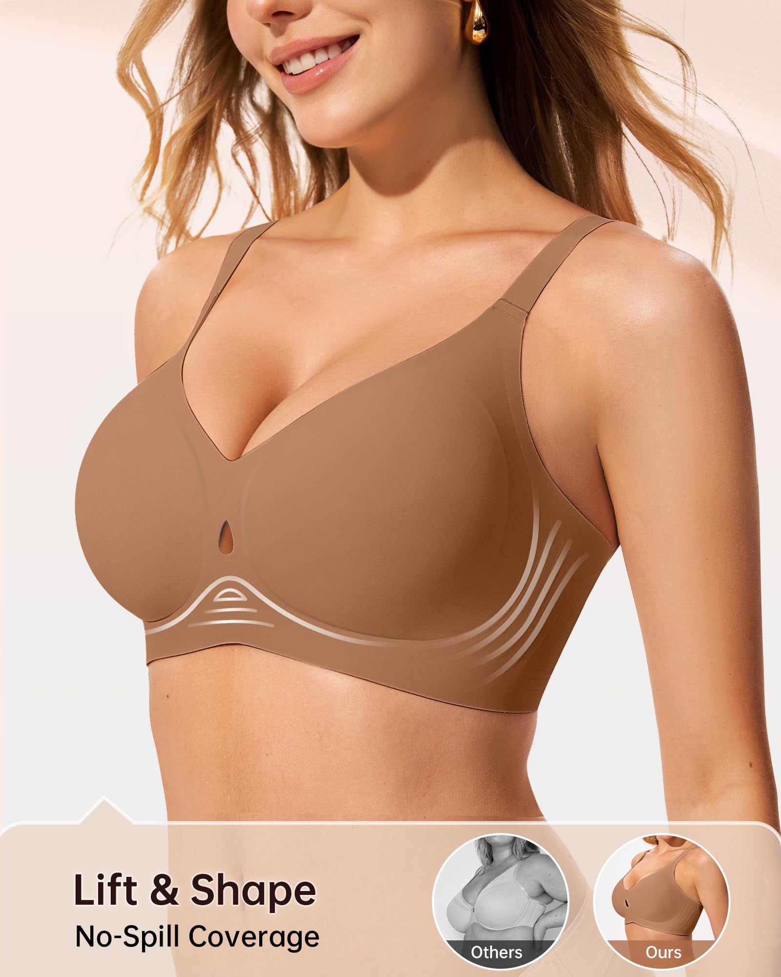 【Breathable Hollow Water Drop Design】Delicate water drop cutouts combine breathability and elegance in LetsJoli wireless bras for women, creating a comfortable experience while enhancing comfort and fit. The breathable hollow cutouts enhance airflow, keeping you cool and dry during extended wear and improving overall comfort