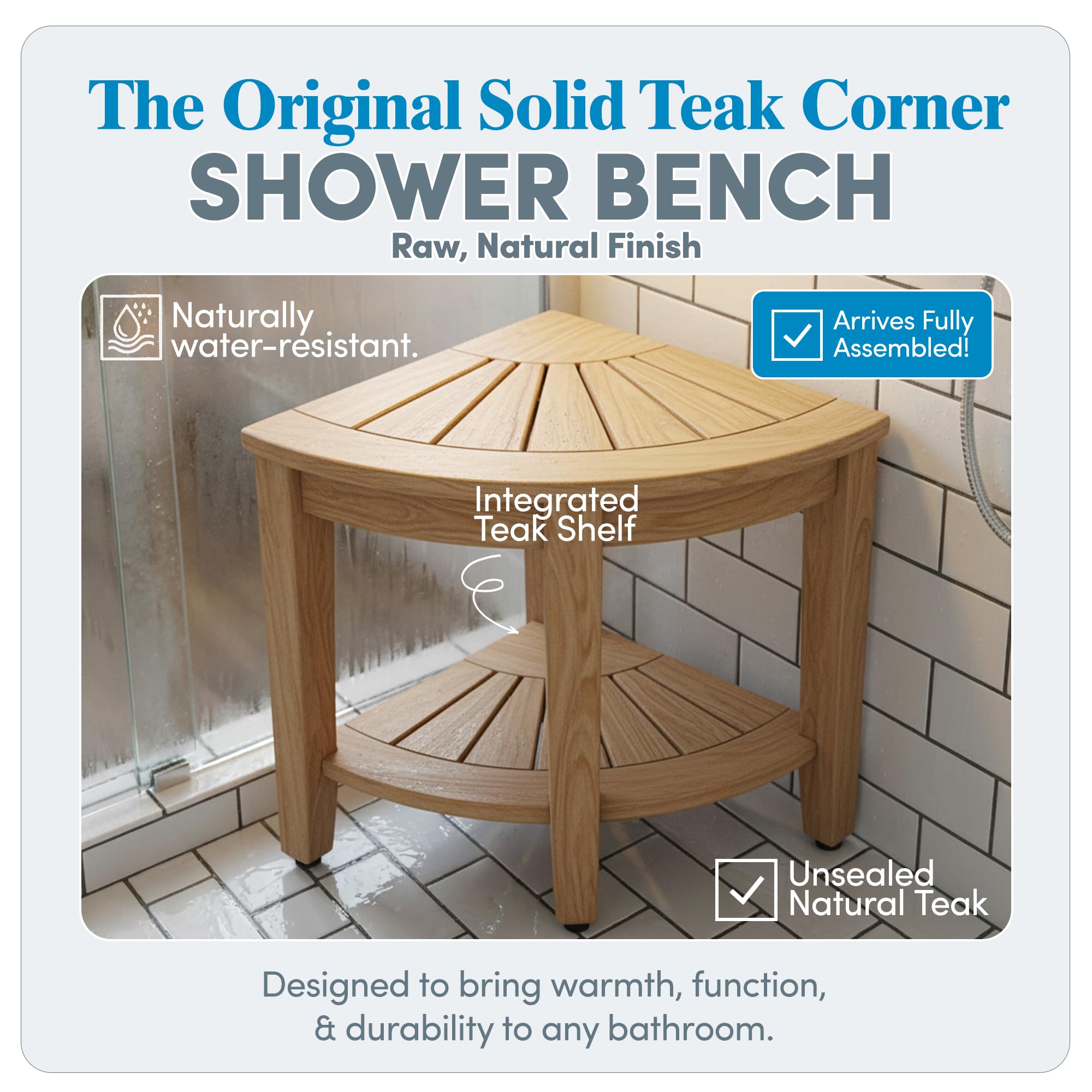Smart Storage Design: Built with all stainless steel, non-corroding screws, this teak wood bench is built to last. Designed with a built-in corner shelf, it helps you organize your bathroom essentials. Keep your soaps, towels, or razors easily accessible while maintaining a clutter-free space. Ideal as a shower organizer or bathroom shelf, this bench maximizes both functionality and style.